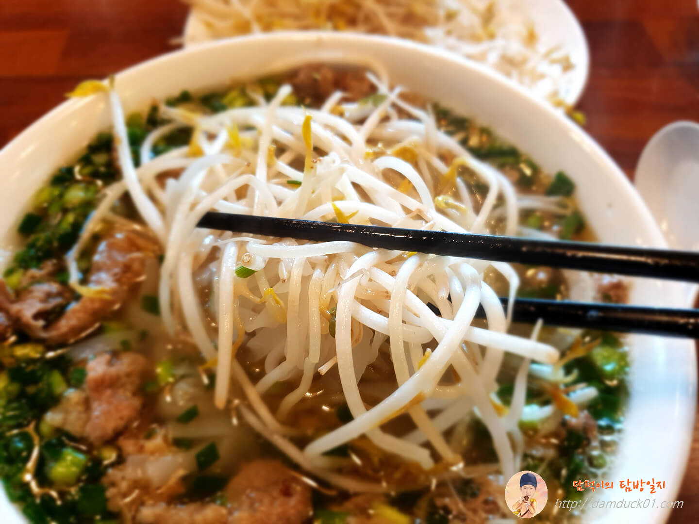 국물 딱 한 숟가락 마셔 보니까 한국식으로 완전히 변화시킨 쌀국수는 아니고요. 제법 현지 느낌이 나는 쌀국수 국물 맛이 나더라고요.