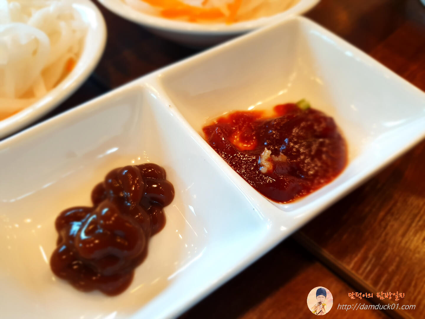 데친 숙주나물이 먼저 나오고 무채 절임(?)이 나왔는데요.