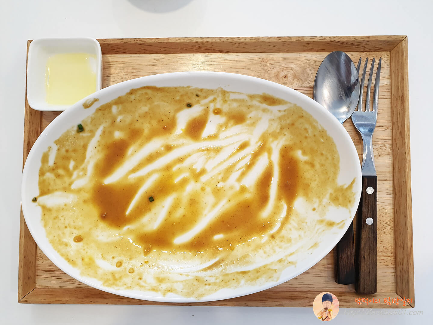 반반 카레를 시켜서 두 가지를 한 번에 즐겨볼까 하다가 결국 하나씩 먹어봐야겠다는 생각에 새우크림카레를 주문했답니다.