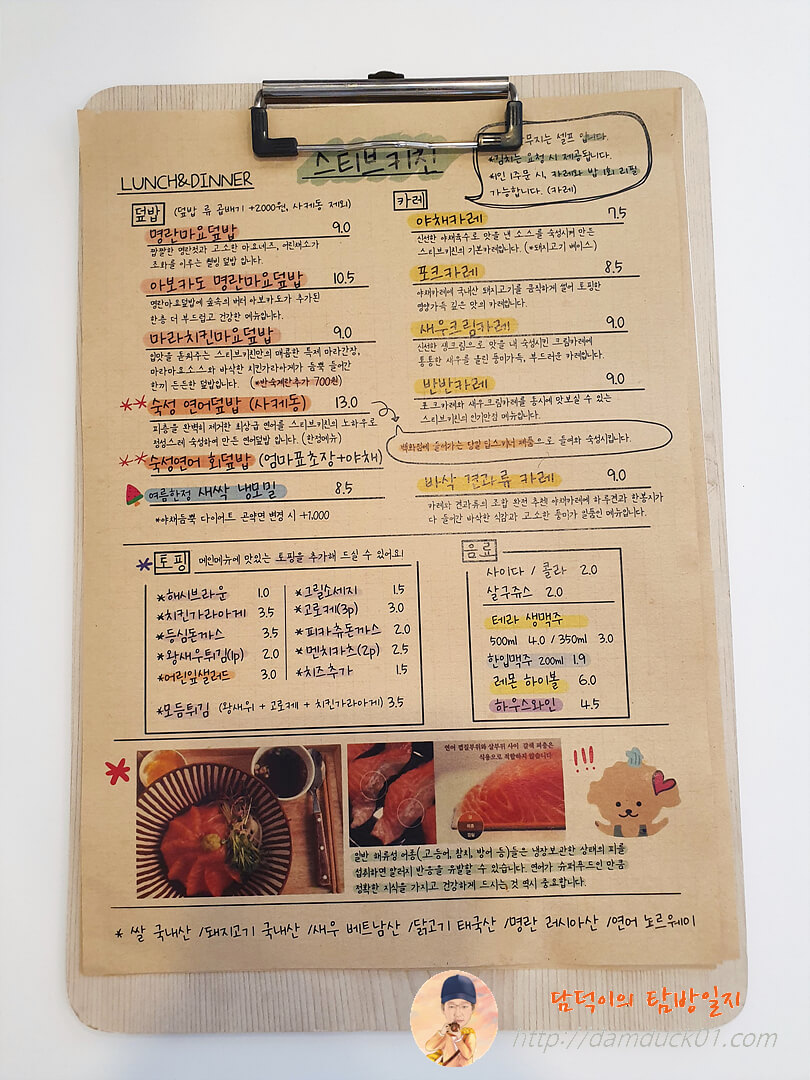 스티브키친의 메뉴는 크게 덮밥과 카레 두 가지로 분류가 되는데요.