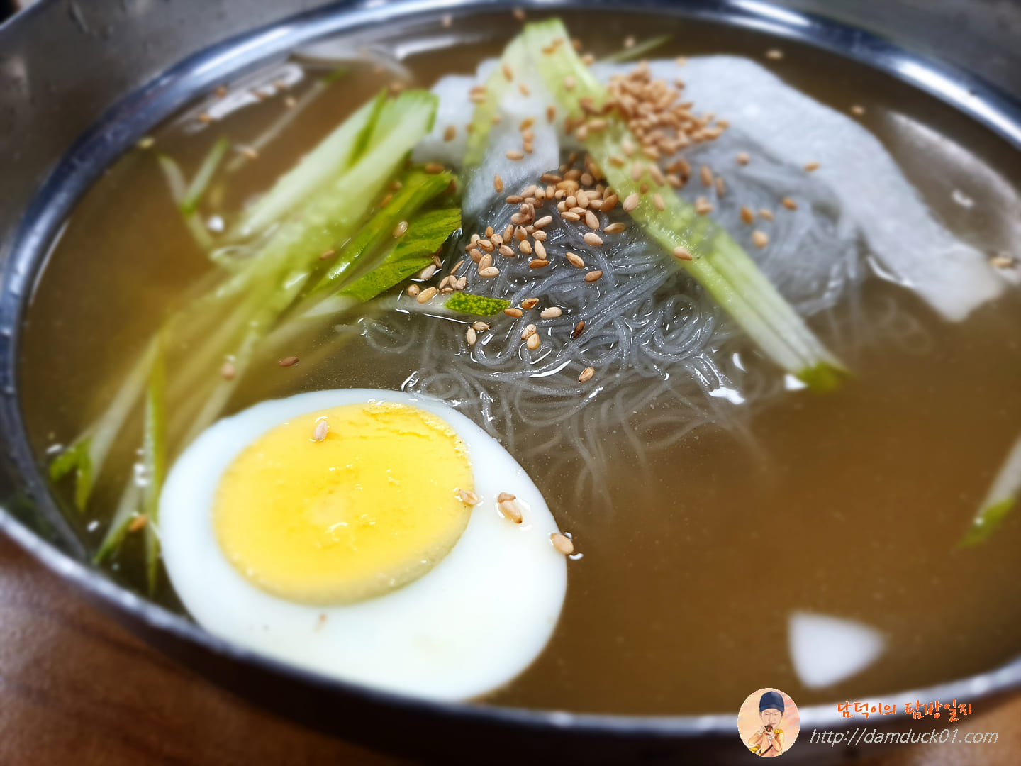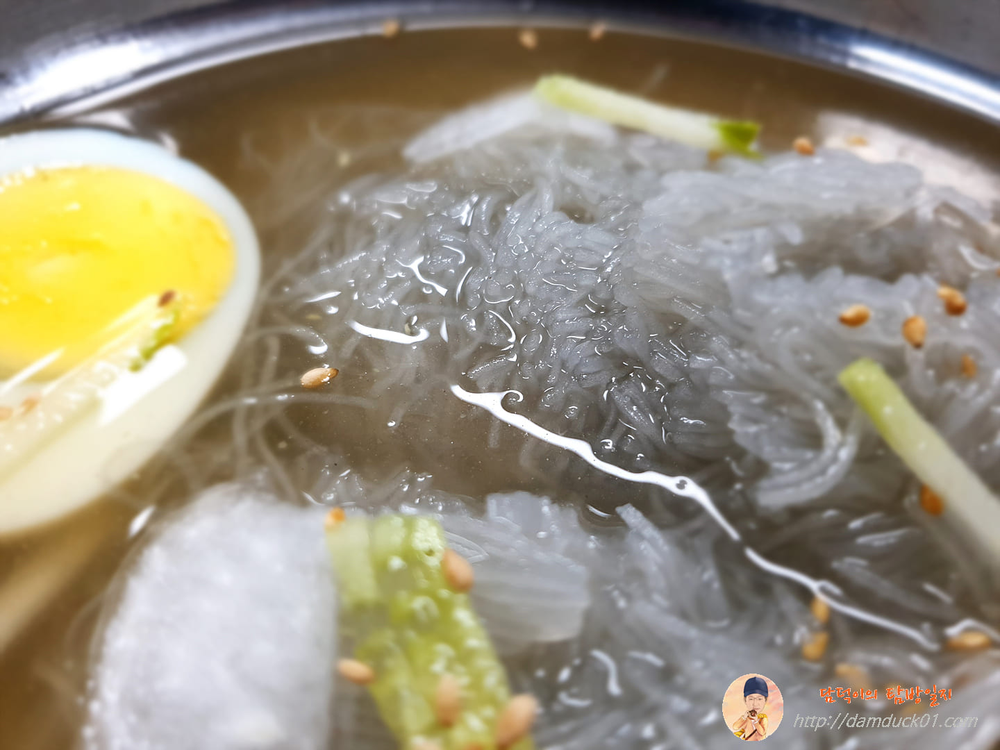 살얼음이 동동 띄워져 있기를 바랐는데 살얼음이 없어서 아쉬웠거든요. 그런데 일단 국물을 마셔보니까 얼음이 없어도 엄청 시원했어요. 이 정도면 얼음 없어도 괜찮습니다.