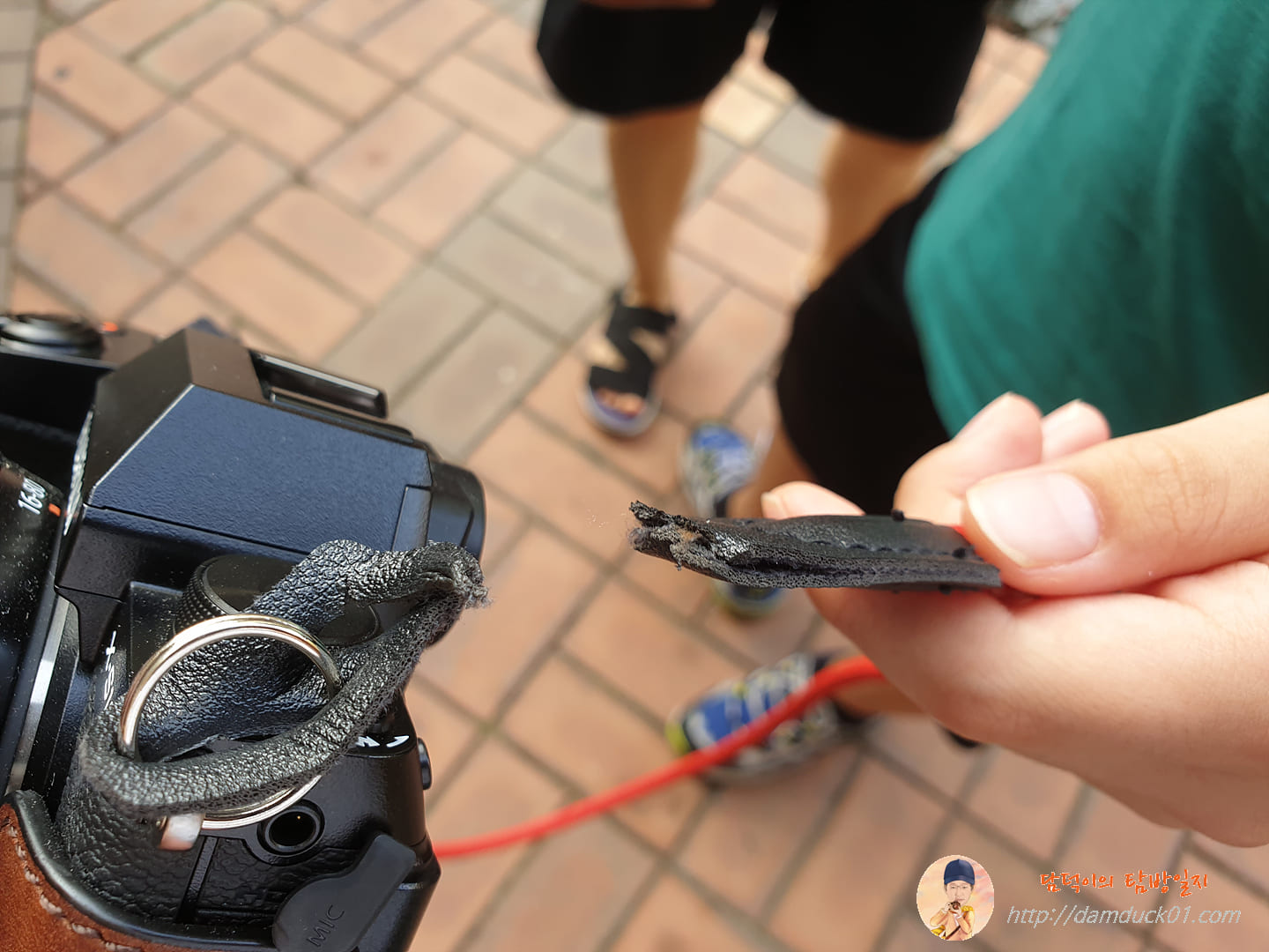 그런데 바로 어제 카메라를 챙겨서 가볍게 집을 나서는 순간 스트랩 한쪽이 툭하고 끊어지며 하마터면 카메라를 떨굴 뻔했네요. 그나마 양쪽이 동시에 끊기지 않은 게 다행인 걸까요? 이미 아이들하고 나온 상황에서 스트랩 교체하려고 다시 들어가기에는 그렇고 어제는 그냥 손으로 들고 다니면서 찍었습니다. 정말 마음에 드는 스트랩이었는데 연결 부위가 이 정도로 약할 줄은...