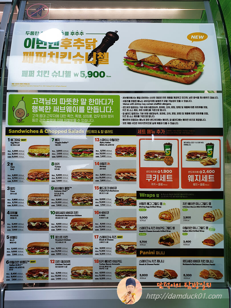 이번에는 뭘 먹을지 알아보지도 않은 채 주문 어려운 써브웨이를 찾았는데 사방에 있는 포스터와 메뉴판을 찾다가 눈에 들어온 메뉴는 바로 페퍼 치킨 슈니첼이었습니다.
