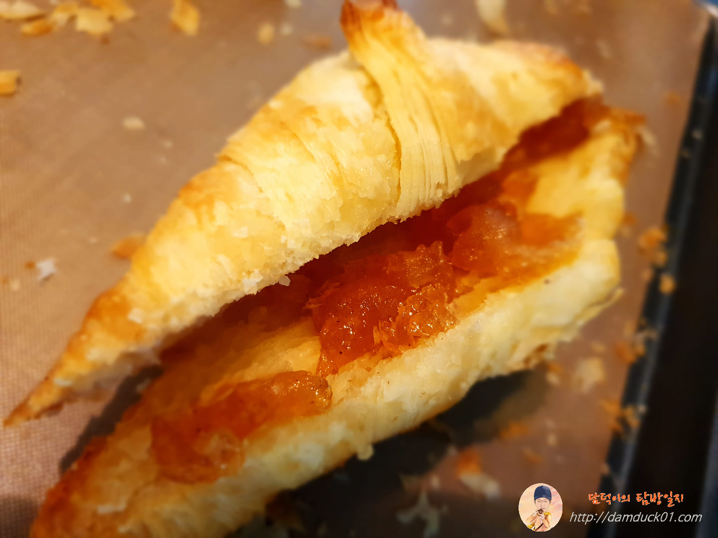 처음부터 다 만든 건 아니고 크루아상 생지를 구매해서 오븐에 굽기만 한 거지만요.