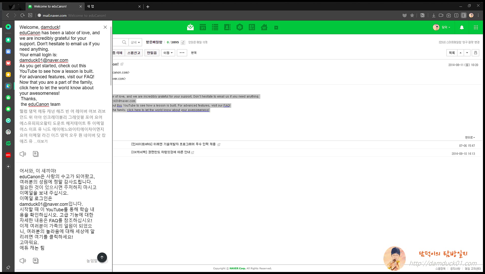 "Welcome, damduck!"라는 영문장을 이렇게 해석을 하네요. 포스팅 작성 전 파파고에 접속해서 해당 문장을 다시 한번 돌려보면 지금은 "어서와, 담덕아!"로 제대로 번역을 해 주는데 과연 이때는 일시적인 버그였을까요? 어떤 버그였는데 damduck을 이 새끼야로 번역을 한 건지... ㅋ