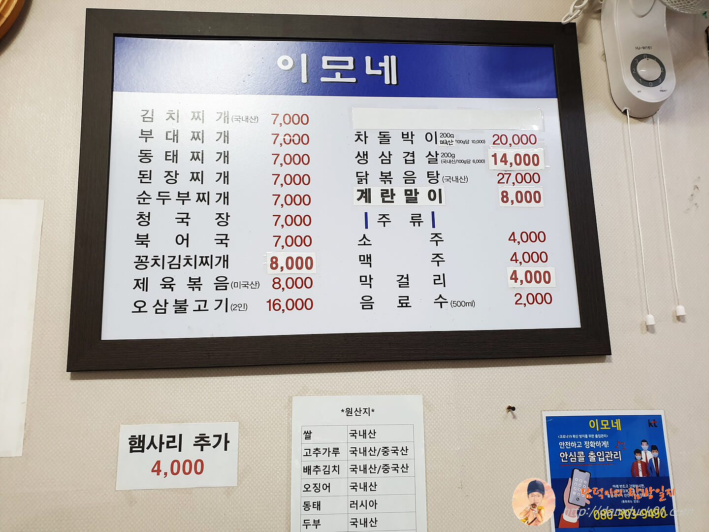 부대찌개라고 적고 햄 김치찌개라고 읽으면 되는 이모네 부대찌개입니다.