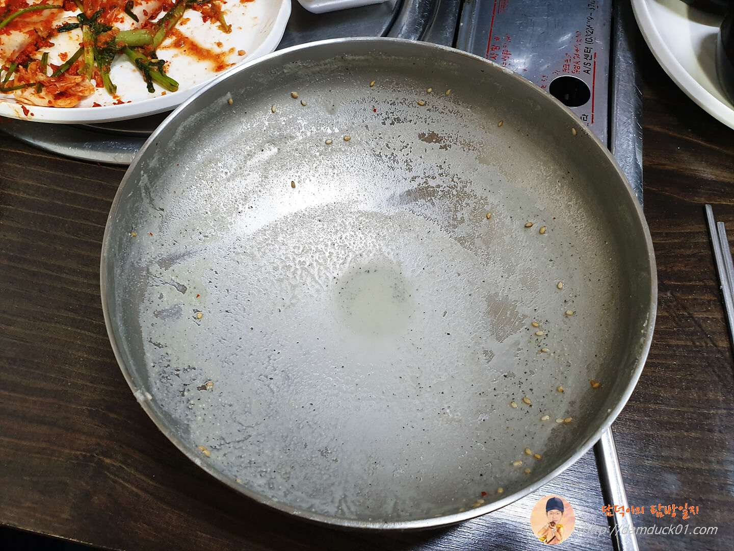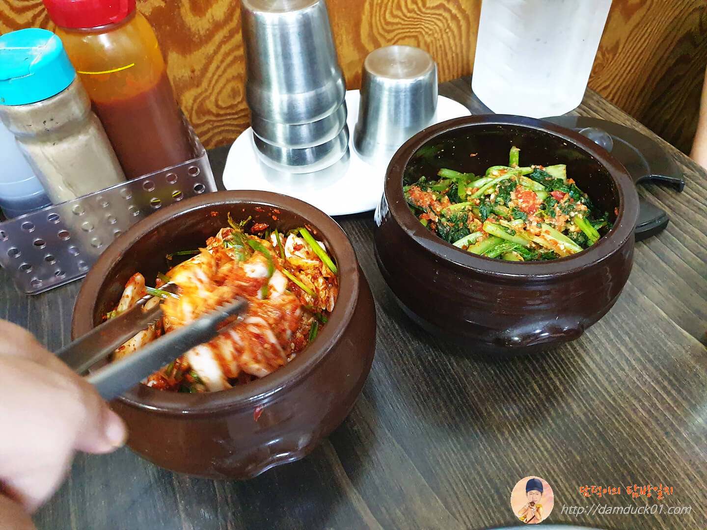 반찬은 두 가지, 배추김치와 열무김치가 테이블에 준비되어 있습니다. 빈 그릇에 먹을 만큼 직접 덜어 먹으면 식사 준비 끝.