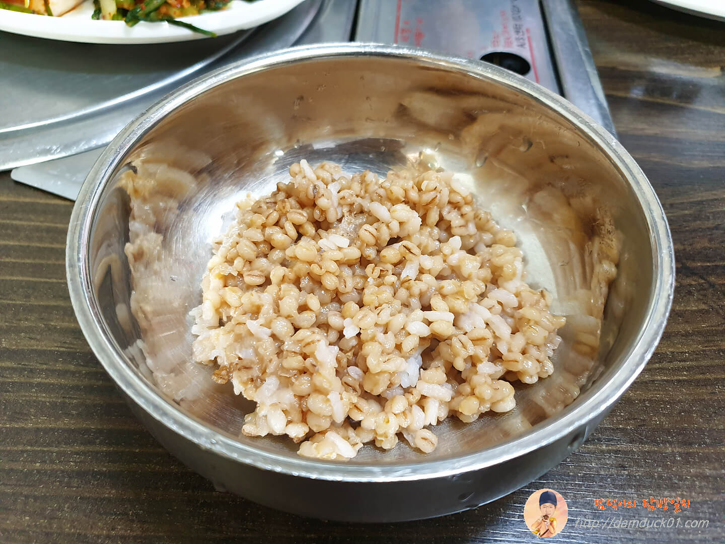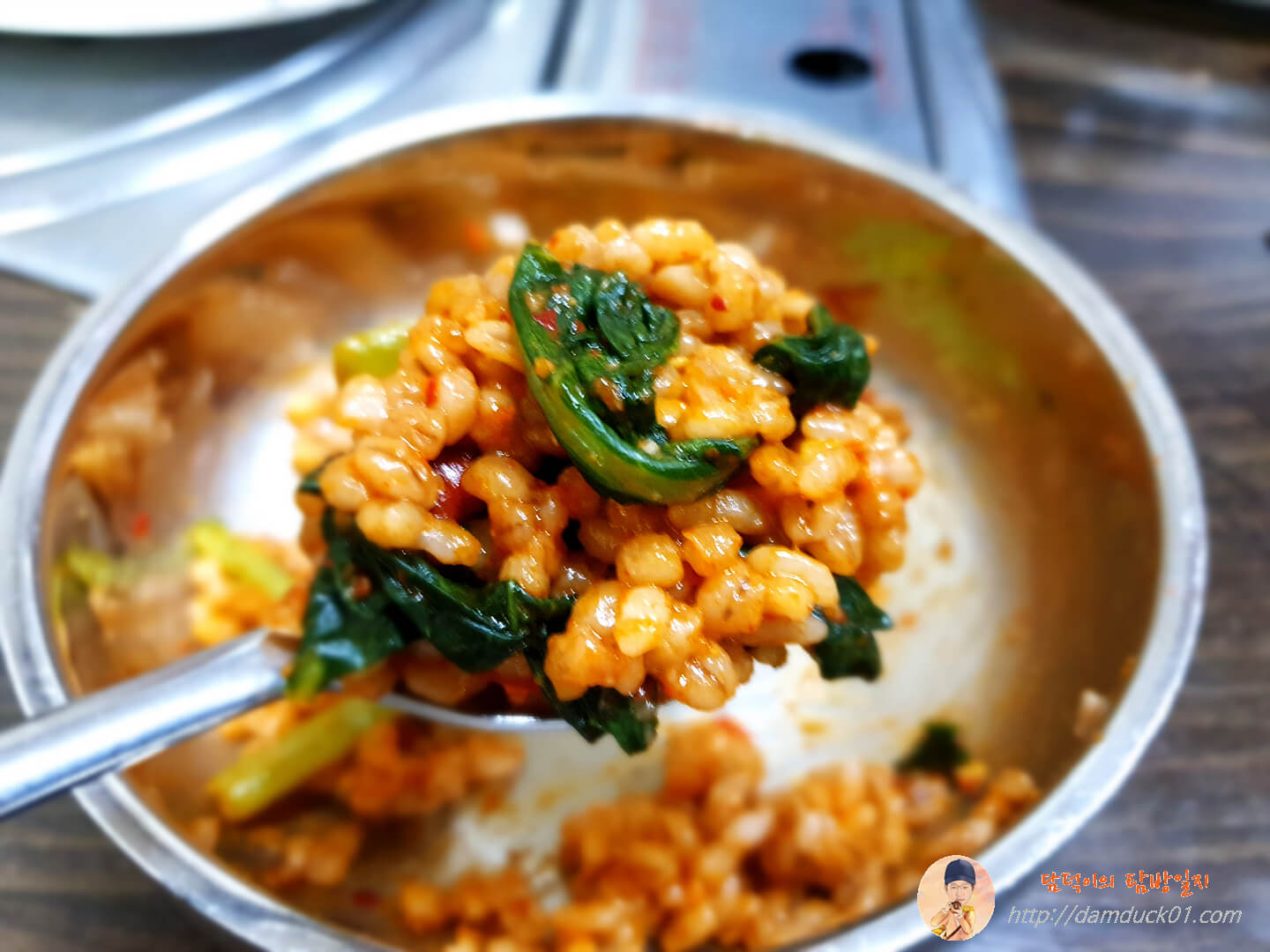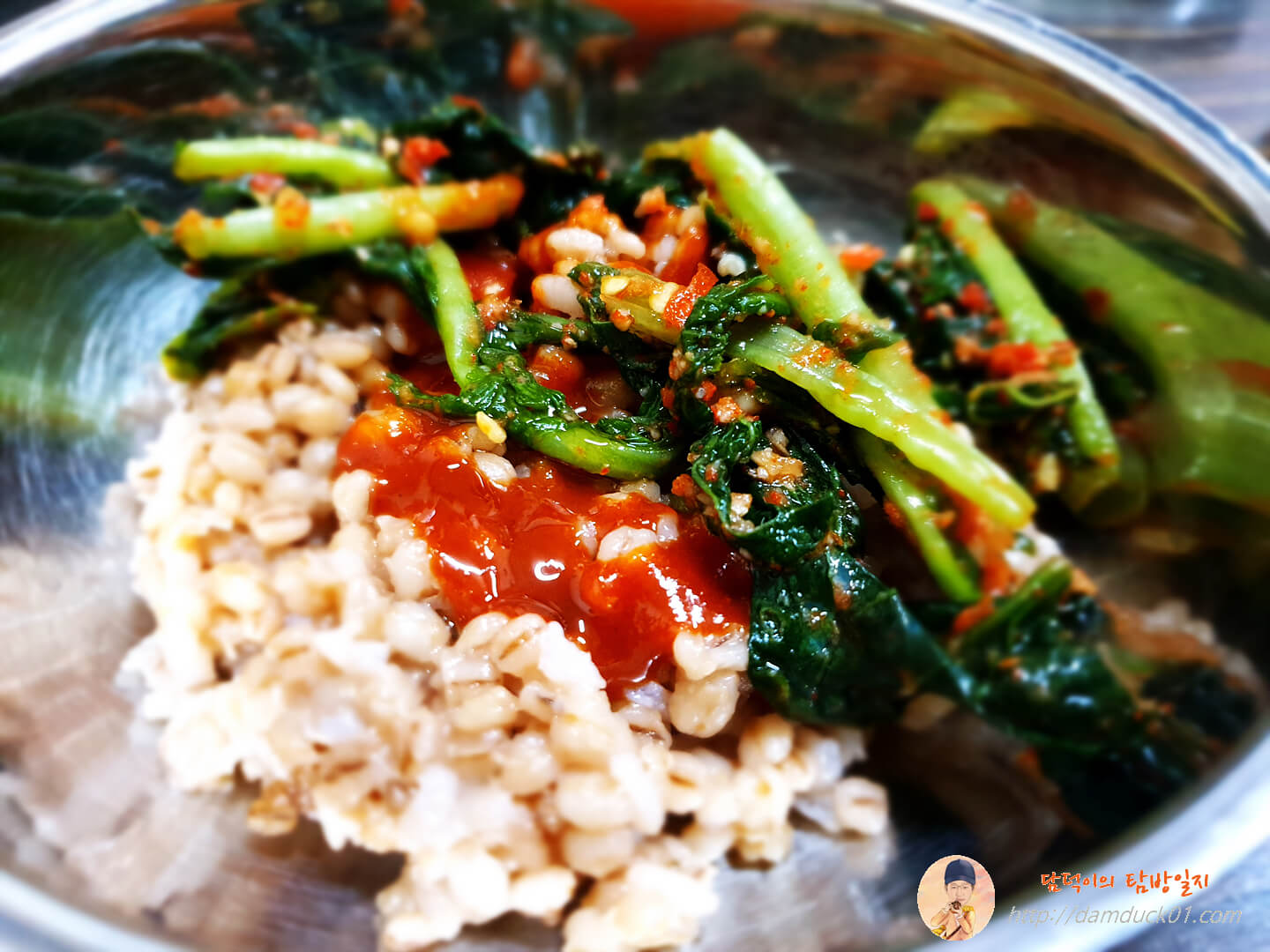응? 전 냉콩칼국수를 주문했는데 보리밥이 먼저 나오네요. 아하! 이거 애피타이저로 보리비빔밥 먼저 만들어 먹는 거로군요. 구로에 있는 명품들깨칼국수에서도 이렇게 열무 보리 비빔밥을 애피타이저로 줬었는데 요즘 칼국수 가게에서는 이게 기본인 건가요?