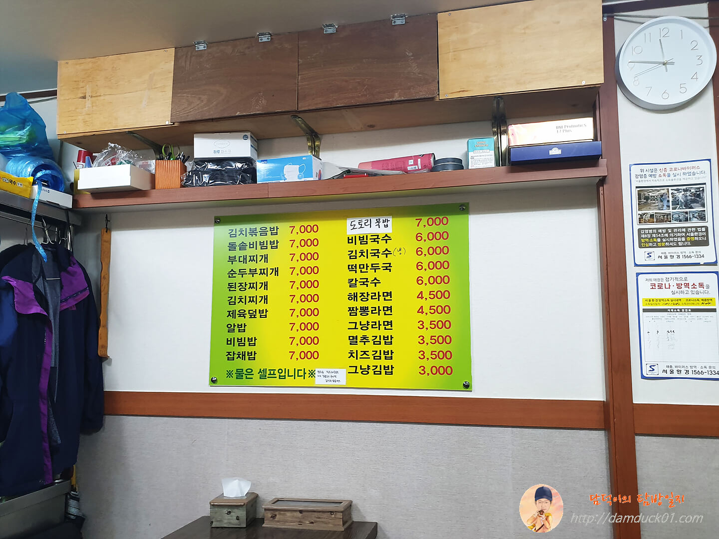 그때는 저 도토리묵밥이라고 적혀 있는 곳이 그냥 비어 있었어요. 아무것도 적혀 있지 않은 흰 종이로 가려져 있었는데 어제는 저곳에 도토리묵밥이라고 적혀 있더라고요.