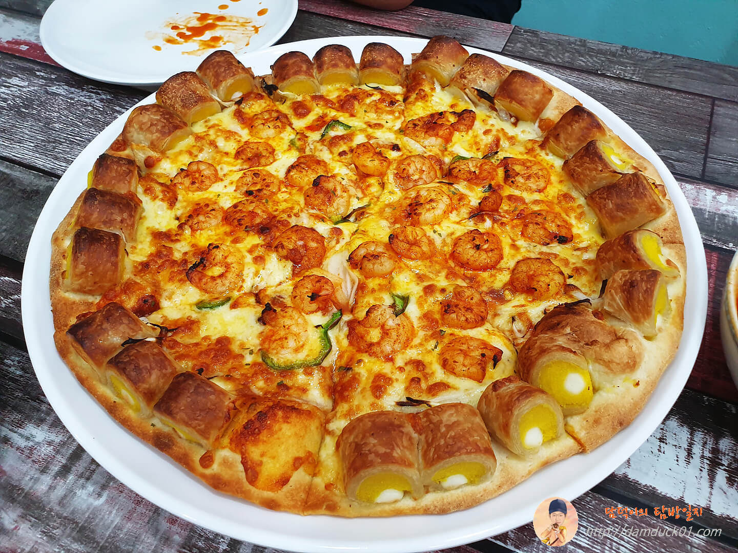 사장님은 불고기 바이트 피자를 추천하셨지만 전 새우!
