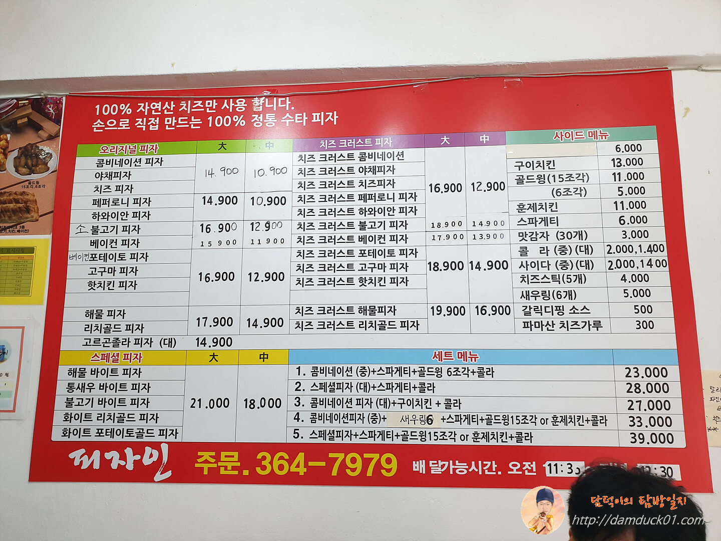피자인 메뉴입니다. 종류가 어마어마하죠.