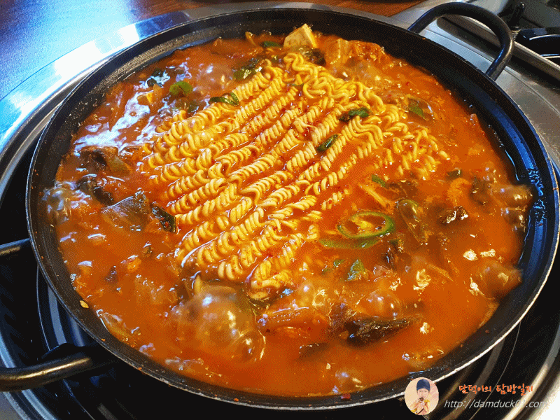 보글보글 끓고 있는 국물 위에 라면 하나가 끓고 있는 모습이 지금 봐도 침 고이게 하네요.