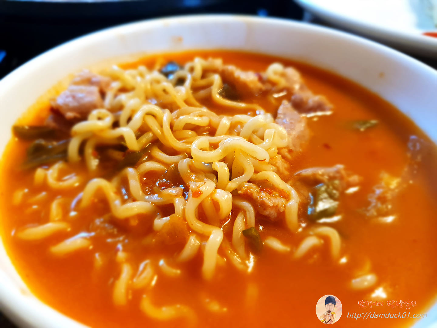 보글보글 끓고 있는 국물 위에 라면 하나가 끓고 있는 모습이 지금 봐도 침 고이게 하네요.