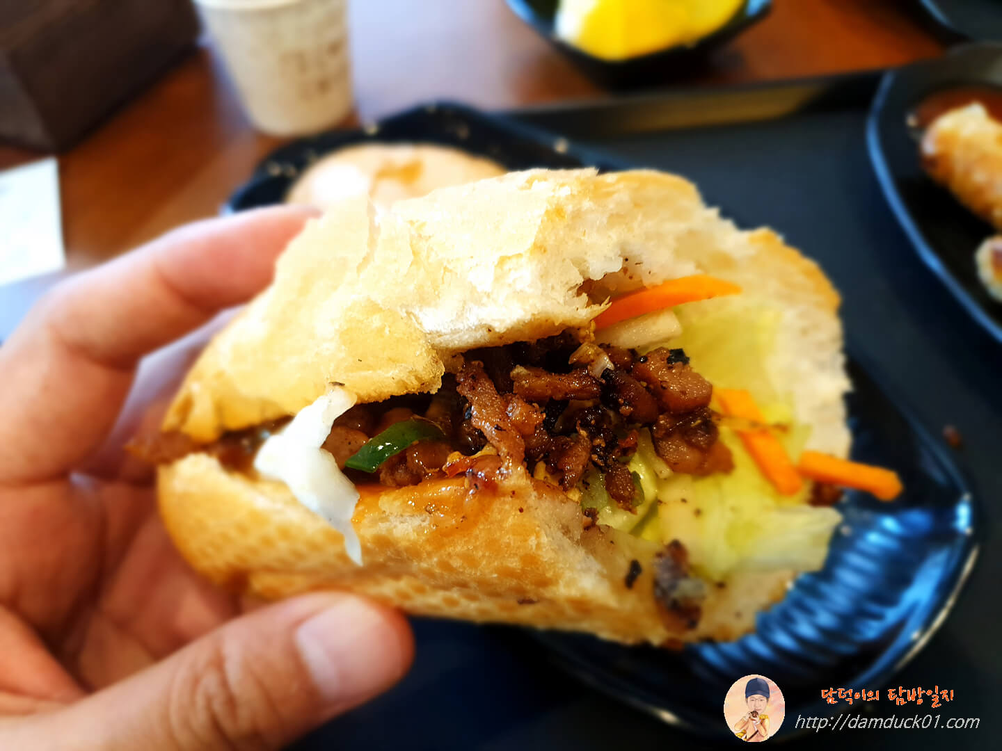 저는 어제 반미를 먼저 다 먹고 난 후 짜조를 먹었는데요. 반미는 음~ 왜 요즘 반미를 파는 카페나 샌드위치 가게들 많잖아요? 제가 그런 곳에서 먹어본 적은 없지만 세움 간판에 있는 반미 사진들을 보면 꽤 맛있어 보였거든요. 그런데 사이공 반미는 뭐랄까? 제가 집에서 만든 느낌? 왜 우리나라도 요즘은 잘 안 보이는데 길거리 음식으로 팔던 샌드위치 있잖아요. 식빵 달걀물에 적셔서 철판에 굽고 양배추 잘게 썰어서 케첩이랑 마요네즈에 버무려서 식빵 안에 담은 후 쿠킹 호일로 감싸서 파는 그 샌드위치요. 이게 거기서 사 먹으면 맛도 좋고 보기도 좋은데 제가 집에서 만들면 모양이 잘 안 나온단 말이죠. 그런 느낌이었어요.
