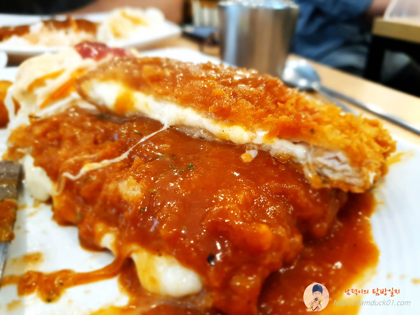치즈만 너무 과하게 들어 있고 고기 식감은 거의 느껴지지 않을 정도로 만들어 파는 치즈 돈가스들이 있는데 전 그런 치즈돈가스는 별로거든요.