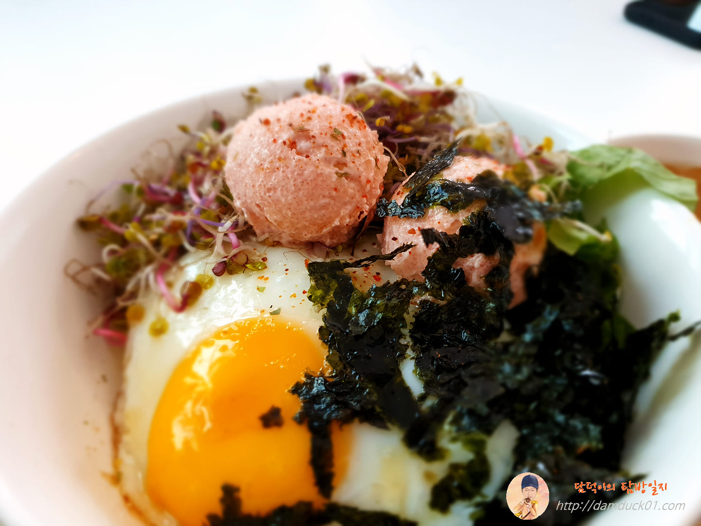 매콤함은 없지만 담백하면서도 명란 때문인지 요소요소의 적절한 짠맛이 잘 어우러지는 덮밥이었어요.