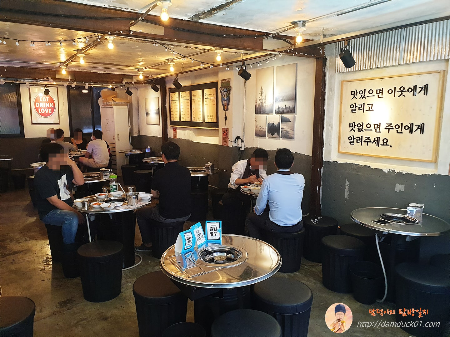 닭볶음탕이 나오는 시간이 있어서 그 사이 실내 사진을 찍어 봅니다. 식당이라기보다는 실내 포차의 느낌이 나는 거 같네요. 우측에 붙어 있는 "맛있으면 이웃에게 알리고 맛없으면 주인에게 알려주세요."라는 문구가 눈에 들어옵니다.