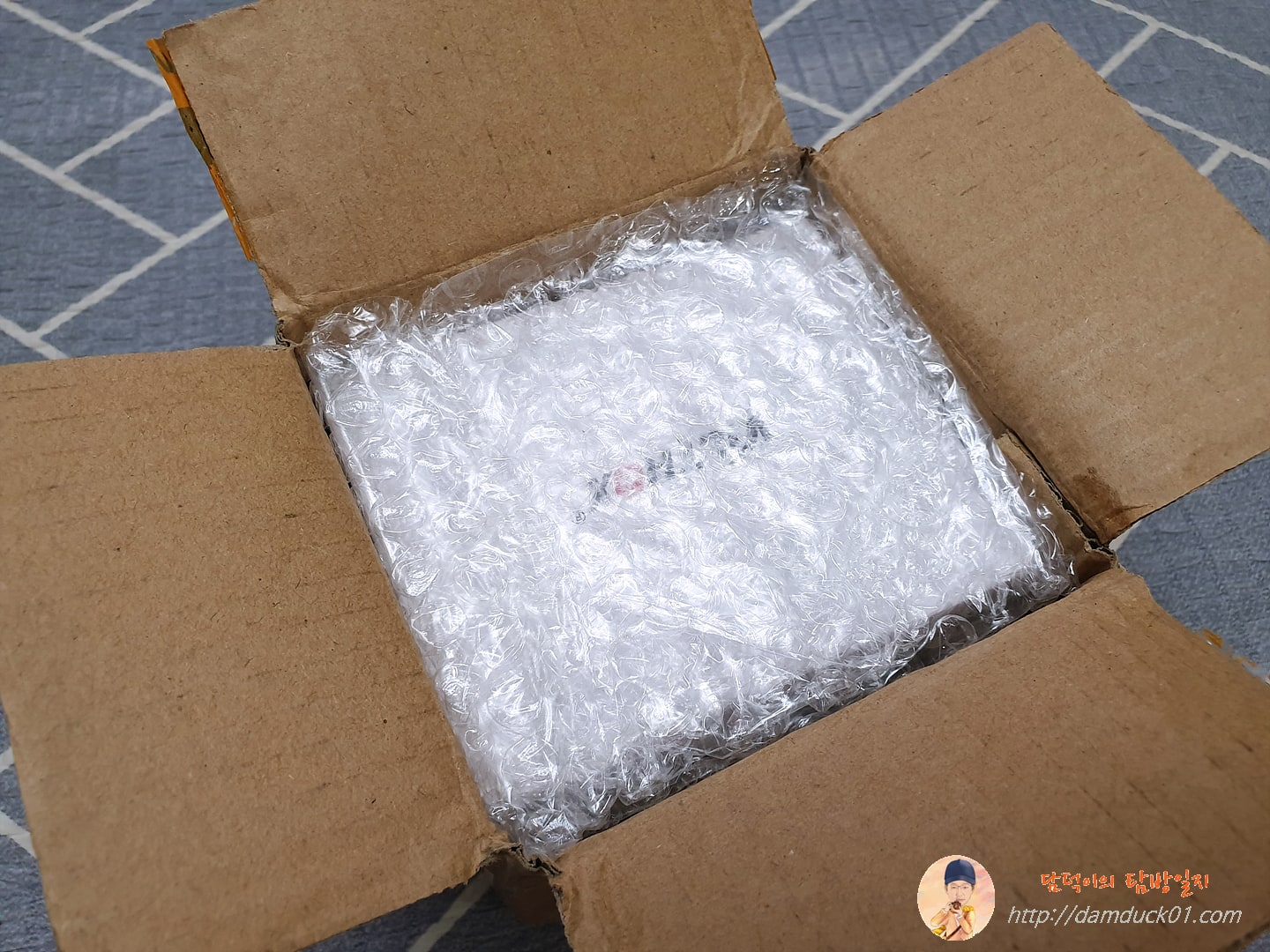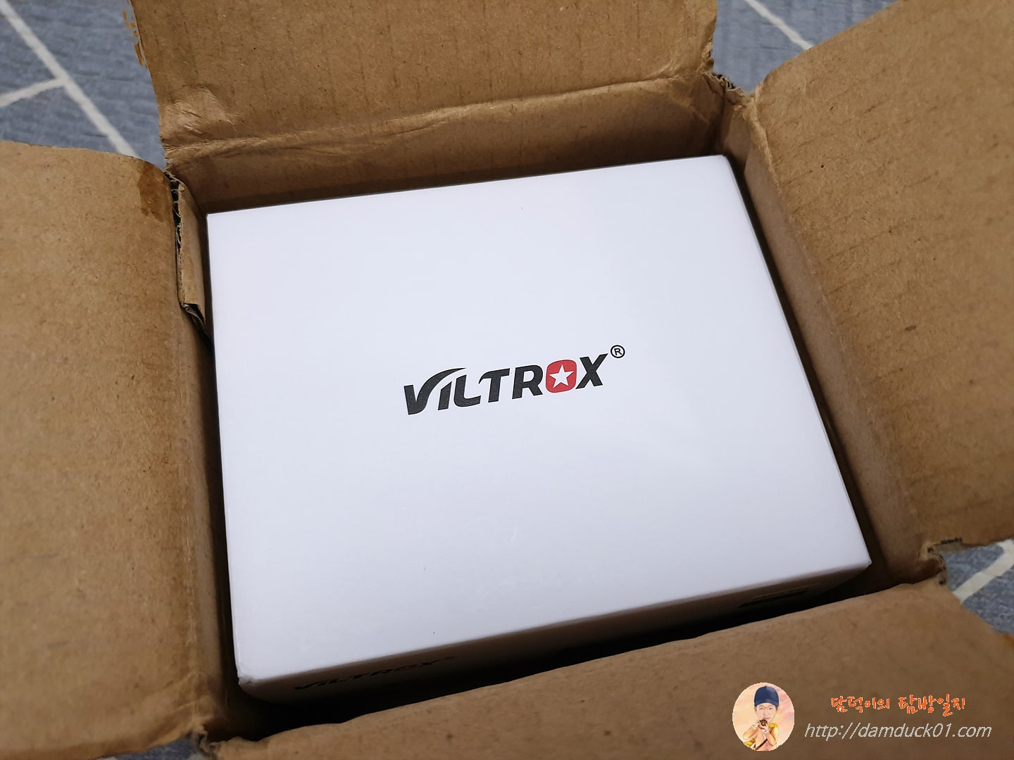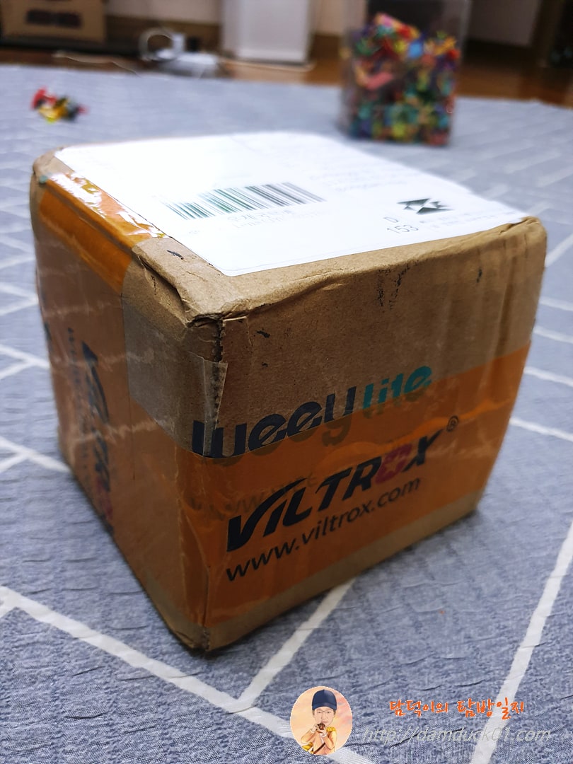 상자는 생각보다 많이 작아요. 역시 사진과 영상으로 보는 것과 실제 보는 건 차이가 있네요. 택배 상자를 조심스럽게 잘라내고 VILTROX 상자가 보이는데 뽁뽁이는 상자 전체를 감싸고 있는 게 아니고 위에만 덮여 있네요.