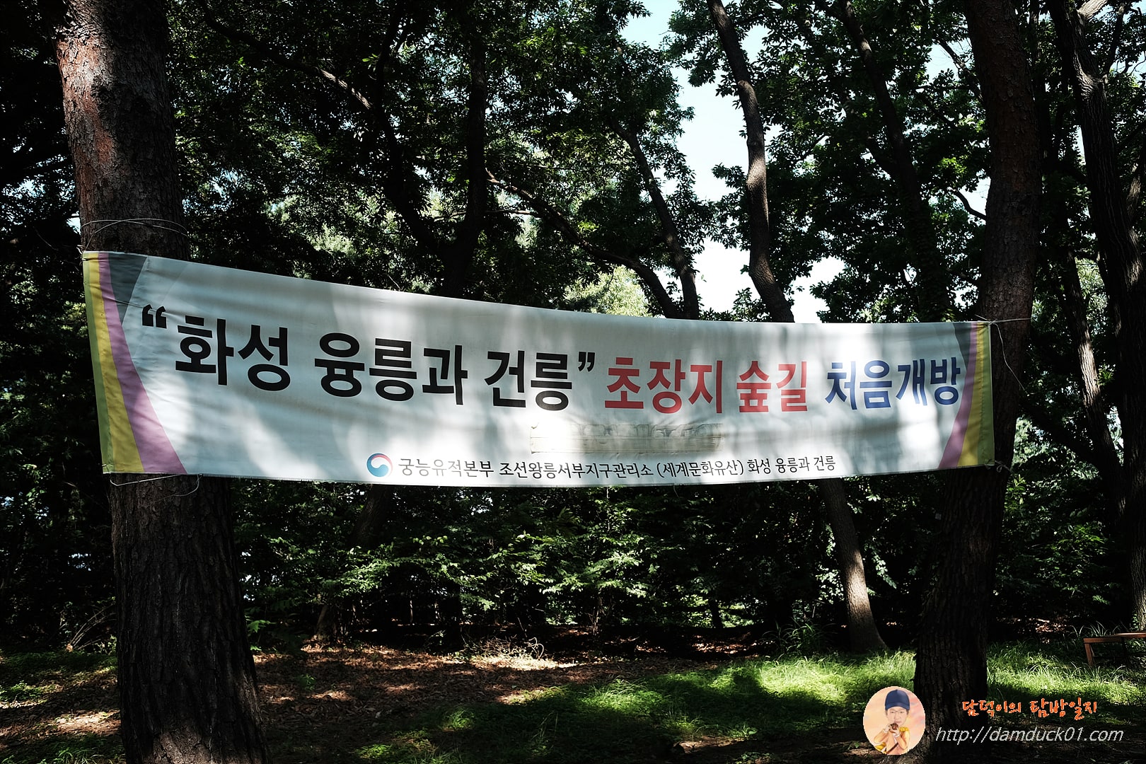 코스가 우리 예상보다 짧아서 조금 더 걸어볼 생각으로 왼쪽 길로 들어서니 현수막이 걸려 있는데 "화성 융릉과 건릉" 초장지 숲길 처음 개방이라고 적혀 있어요.