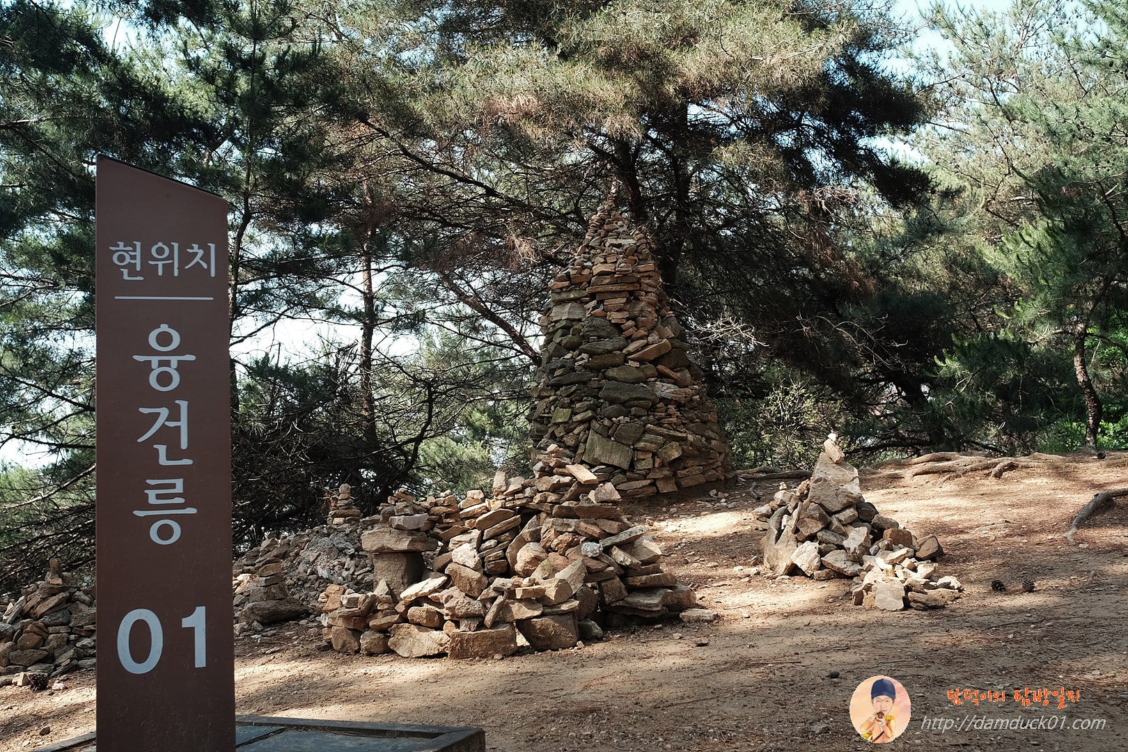 잘 관리되어 있는 길을 따라 걷다 보면 이렇게 융건릉 안내석과 돌무더기를 만날 수 있어요.