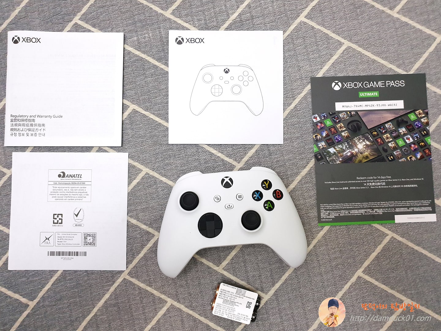 별로로 구매한 Xbox 무선 컨트롤러에 더 많은 설명서들이 들어 있습니다. 여기서 제일 좋은 건 우측에 컬러로 인쇄되어 있는 종이 한 장, 여기에 XBOX GAME PASS 14일 이용권이 있습니다. XBOX GAME PASS는 쉽게 얘기해서 게임기의 넷플릭스라고 생각하시면 됩니다. 월 구독료를 지불하면 XBOX의 많은 게임들을 그냥 사용할 수 있게 해 주는 건데요. 제가 확인해 본 걸로는 300개가 넘는 게임이 제공되더라고요. 일단 14일 동안은 이 이용권으로 사용하면 될 거 같다고 생각했고 아주 잘 사용 중이랍니다. 벌써 14일 이용 기간의 절반이 지났어요.
