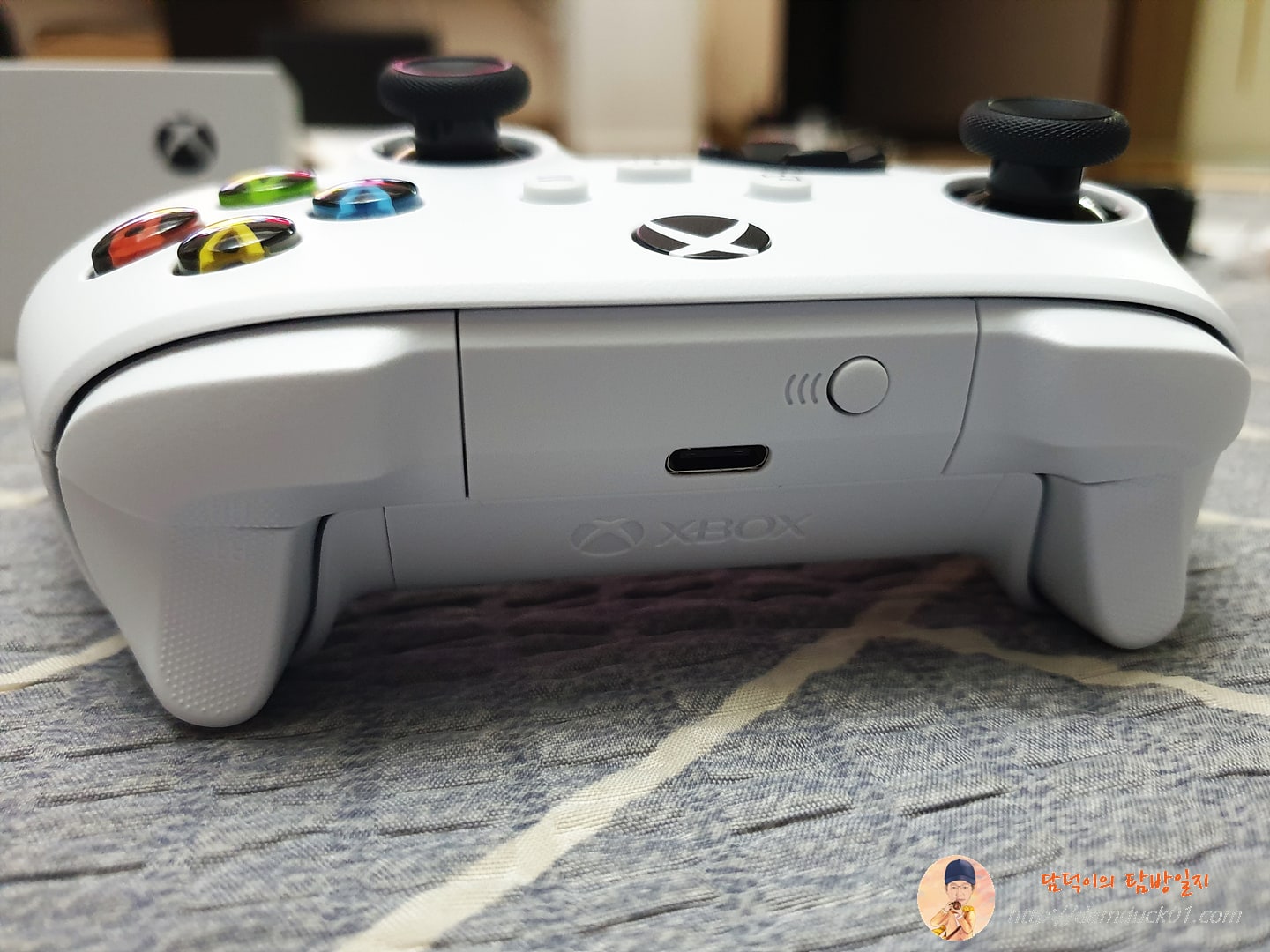 Xbox Series S와 추가로 구매한 컨트롤러 하나, 기본 구성에는 컨트롤러가 하나뿐이더라고요. 하지만 우리 집에는 아이가 둘이라 컨트롤러 두 개가 기본 구성이어야 합니다. 그래서 아이들 삼촌이 게임기 주문하면서 컨트롤러도 추가 구매해 줬죠.