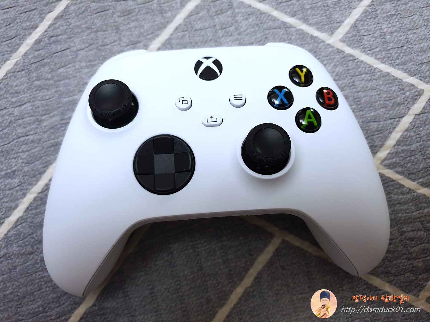 Xbox 무선 컨트롤러는 제품과 동일한 흰색으로 제 기준에서는 마냥 이쁘고 좋아 보입니다. 조작 버튼은 그래도 몇 번 본 적이 있는 구성이긴 한데 이런 흰색은 처음 보네요. 그동안 친구나 아는 사람 통해서 플레이는 몇 번 해 본 적이 있긴 한데 전부 플레이 스테이션이고 검은색이었거든요. 그런데 흰색 괜찮네요.