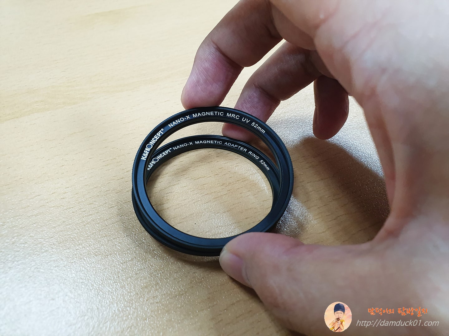 그게 바로 "K&F CONCEPT NANO-X 마그네틱 필터 3종세트 구경 52mm 렌즈어댑터 MRC UV CPL ND1000 독일 쇼트글래스"라는 이름의 마그네틱 필터 세트예요. 기존 필터의 단점 중 하나가 필터를 교체할 때마다 스크루를 돌려서 결합과 분해를 해야 하는 것인데 이 단점을 자석을 이용해 쉽게 탈부착을 가능하게 하는 기능성 필터인 거죠.