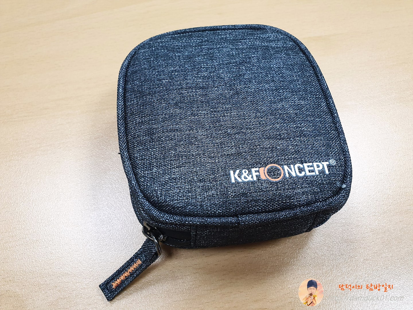 파우치의 재질은 꽤 만족스럽습니다. 정확한 방수 성능은 모르겠지만 약간의 물기는 충분히 보호를 해 줄 거 같은 재질입니다. K&F CONCEPT라고 적혀 있는 것도 고급스럽습니다.