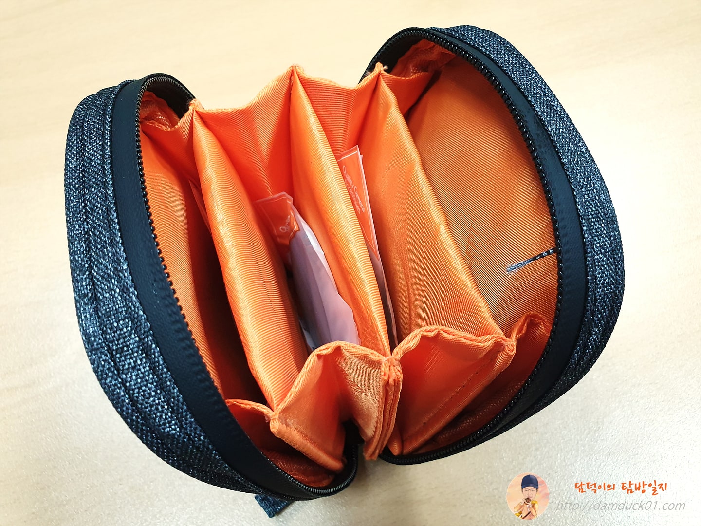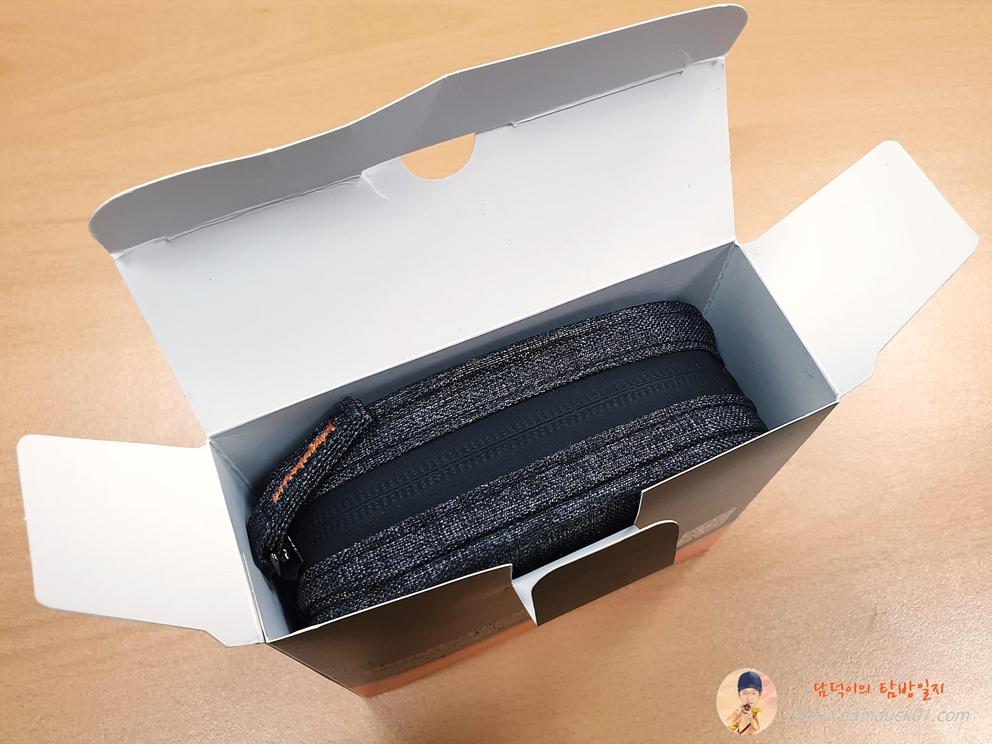 종이를 열어보면 이렇게 전용 파우치가 모습을 드러냅니다. 판매 페이지의 설명에 의하면 방수 지퍼를 사용한 전용 파우치라고 되어 있어요.