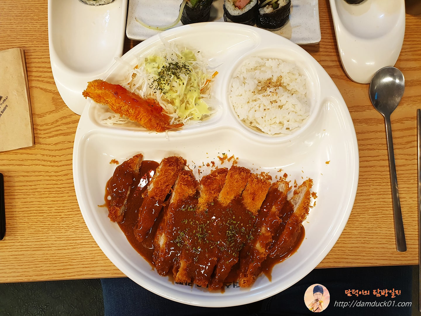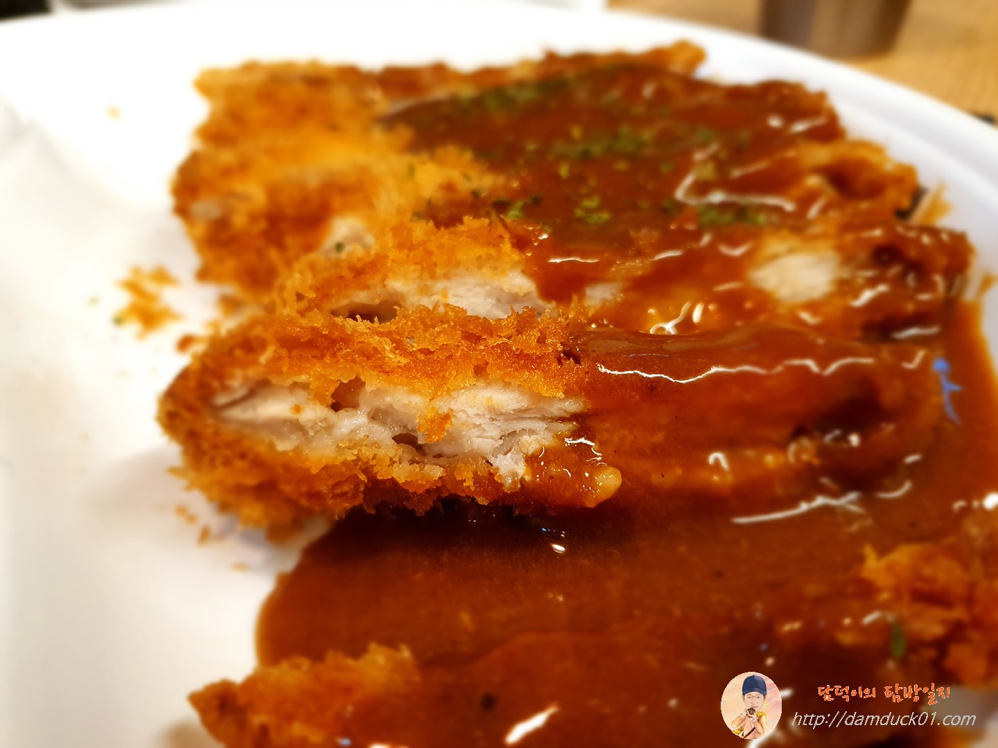 바삭하게 잘 튀겨졌고 고기도 제법 두께가 있습니다. 물론 돈가스 전문점의 돈가스와 비교할 정도는 아니지만 분식집이나 어지간한 경양식 돈가스의 돈가스와 비교하면 가성비 면에서 괜찮은 정도라고 생각해요.