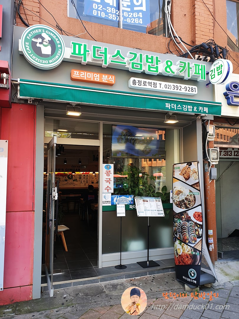 지난주 금요일 제 점심 메뉴는 분식이었습니다. 프리미엄 분식을 표방하는 파더스김밥&카페, 파더스김밥&카페는 충정로에서는 처음인데 수원에서 몇 번 이용한 적이 있는 체인점이에요.