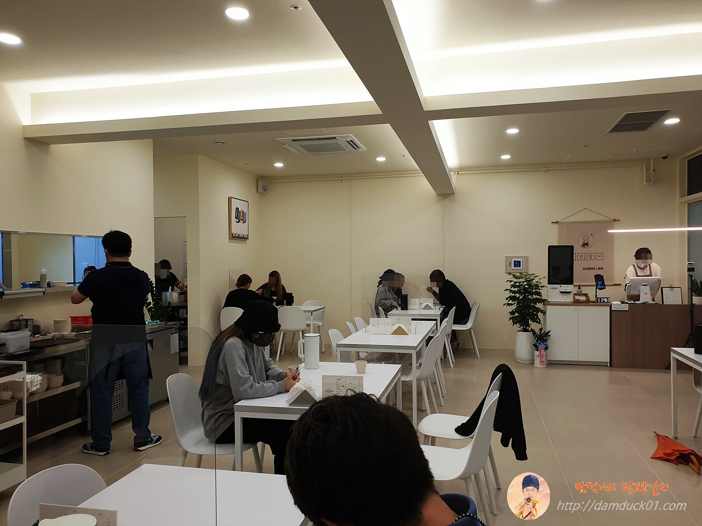 가게 외관은 통유리로 안이 시원스럽게 보이도록 되어 있는데 가게 중앙이 계단으로 막혀 있어서 위치가 조금 아쉽긴 하네요. 개업 첫날이라 그런지 11시 40분경에 도착했는데도 손님이 꽤 있었습니다.