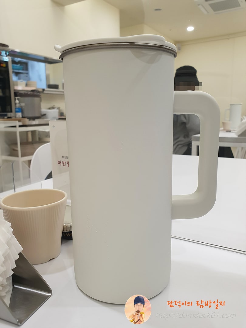 가게는 이전에 충정로에서 제가 다녔던 한식당에 비해서는 확실히 2021년에 개업한 식당이라는 느낌이 팍, 전체적으로 흰색으로 꾸며져 있어요. 가게 벽이나 테이블 의자 심지어 물통까지 깔끔한 흰색으로 통일감 있게 신경 쓴 느낌이 납니다.