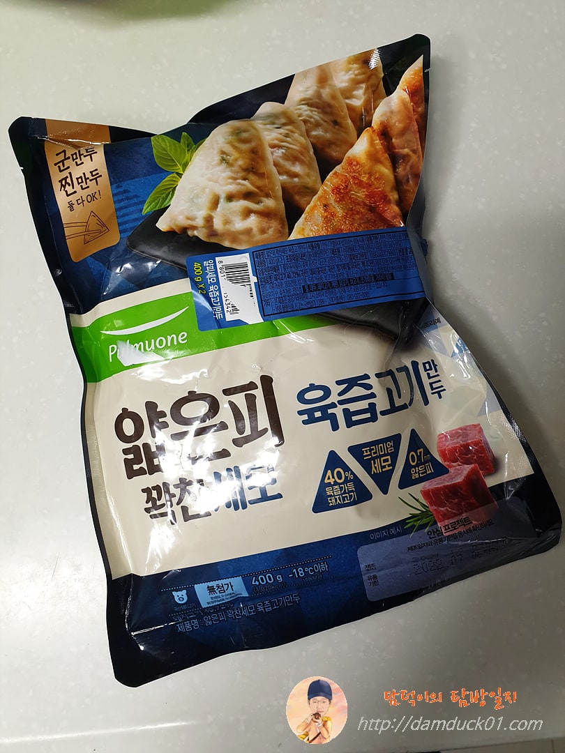 두 번째 에어프라이어 요리는 바로 냉동만두인데요. 홈런볼과 함께 만두를 구매하러 만두 코너에 갔는데 직원분의 권유로 구매해 온 풀무원 얇은 피 꽉 찬 세모 육즙 고기만두입니다. 그런데 오~ 전에는 만두 조리법에 프라이팬과 전자레인지 방법만 봤던 거 같은데 요즘은 에어프라이어 조리법이 있네요. 에어프라이어가 확실히 대세라는 걸 이렇게 한 번 더 알게 되네요.