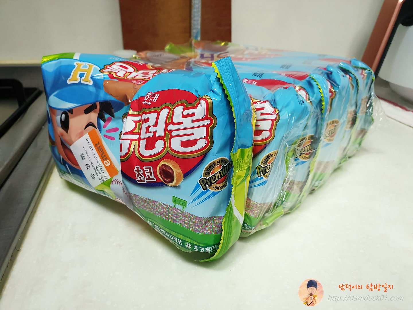 가장 먼저 보여드릴 건 바로 에어프라이어로 돌려 먹는 홈런볼입니다. 에어프라이어로 홈런볼을 맛있게 먹기 위해서 필요한 건 단 두 가지, 에어프라이어와 홈런볼이겠죠. 그래서 이마트까지 가서 사 온 홈런볼인데 큰 거 하나를 사 오려다가 증정품까지 붙어서 개당 가격이 이게 더 저렴하더라고요. 증정품 포함 6개의 홈런볼 초코를 구매했습니다. 예전에 홈런볼은 초코 한 종류만 있던 거 같은데 이날 마트에서 보니까 홈런볼 초코 말고도 치즈, 딸기 등 종류가 다양하던데 이건 저만 몰랐던 걸까요?