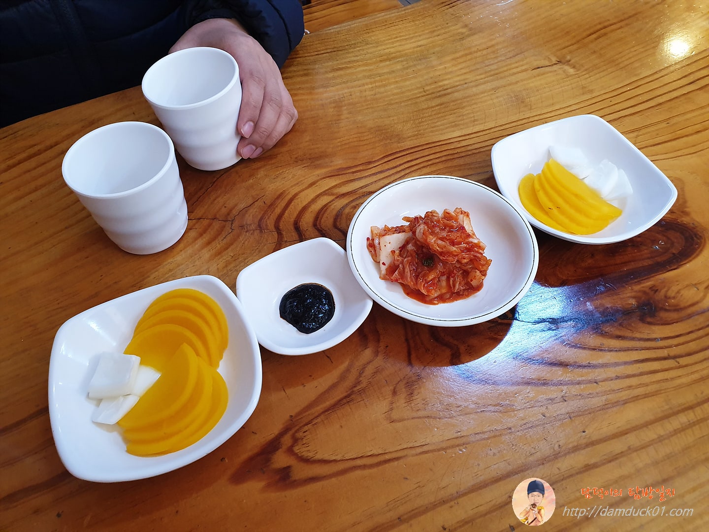 늘 그렇듯 만석궁의 테이블에는 이렇게 단무지와 양파, 춘장, 배추김치가 이미 준비되어 있었습니다.