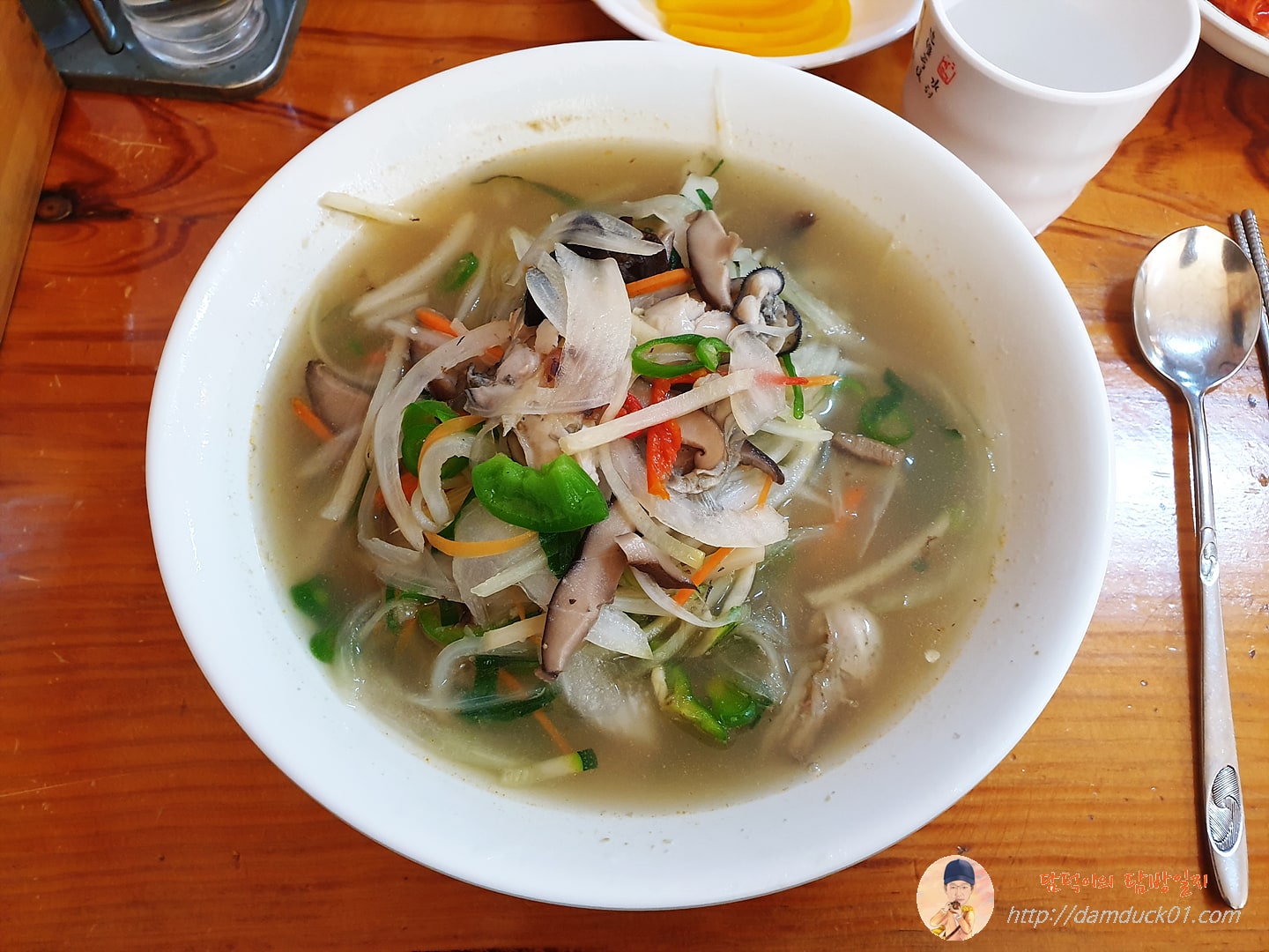 맑은 국물 베이스의 굴짬뽕이 나왔습니다.