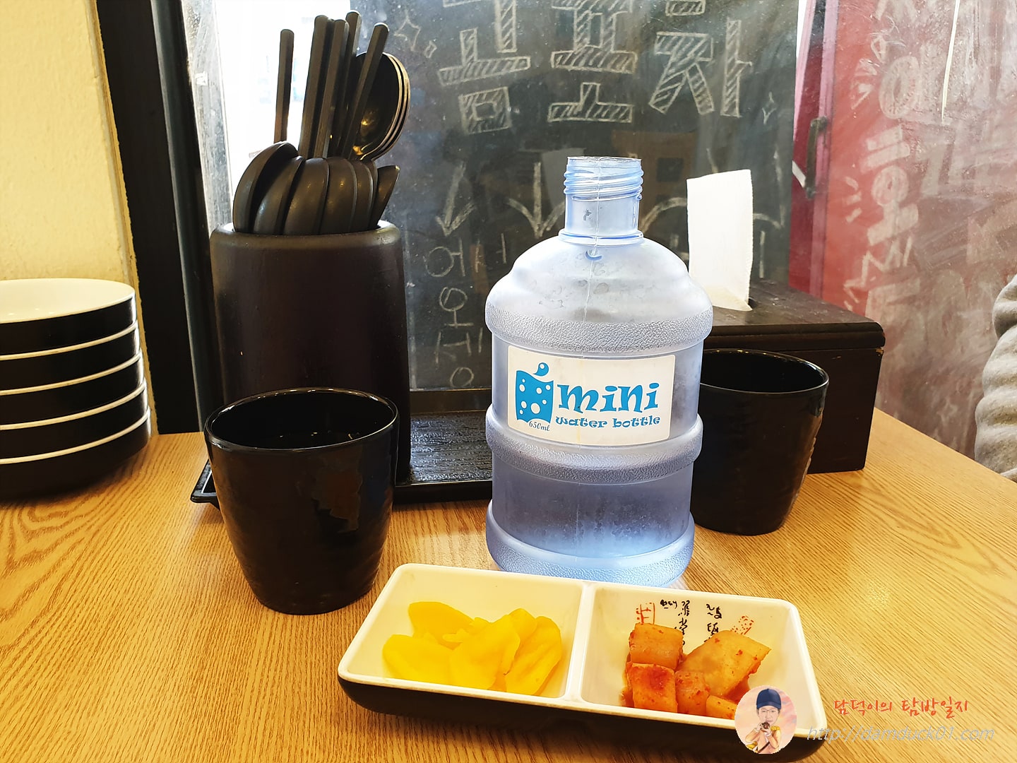 창가에 자리를 잡고 기본 반찬인 단무지와 깍두기를 받았습니다.