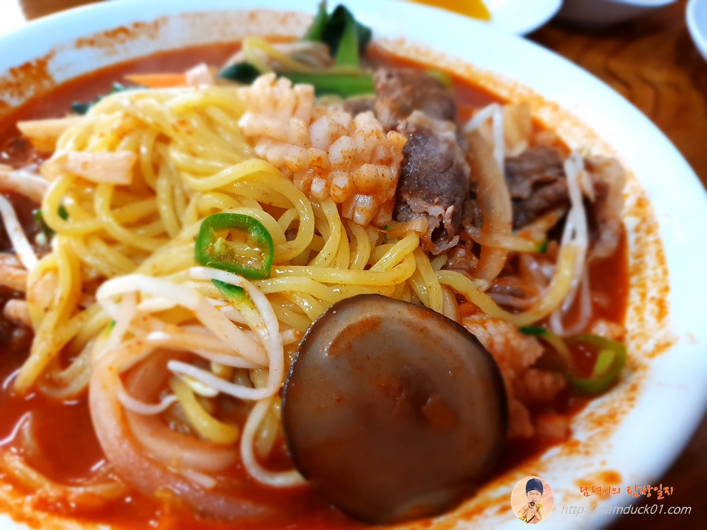 만석궁의 굴짬뽕과는 다르게 차돌박이 짬뽕은 빨간 국물입니다.