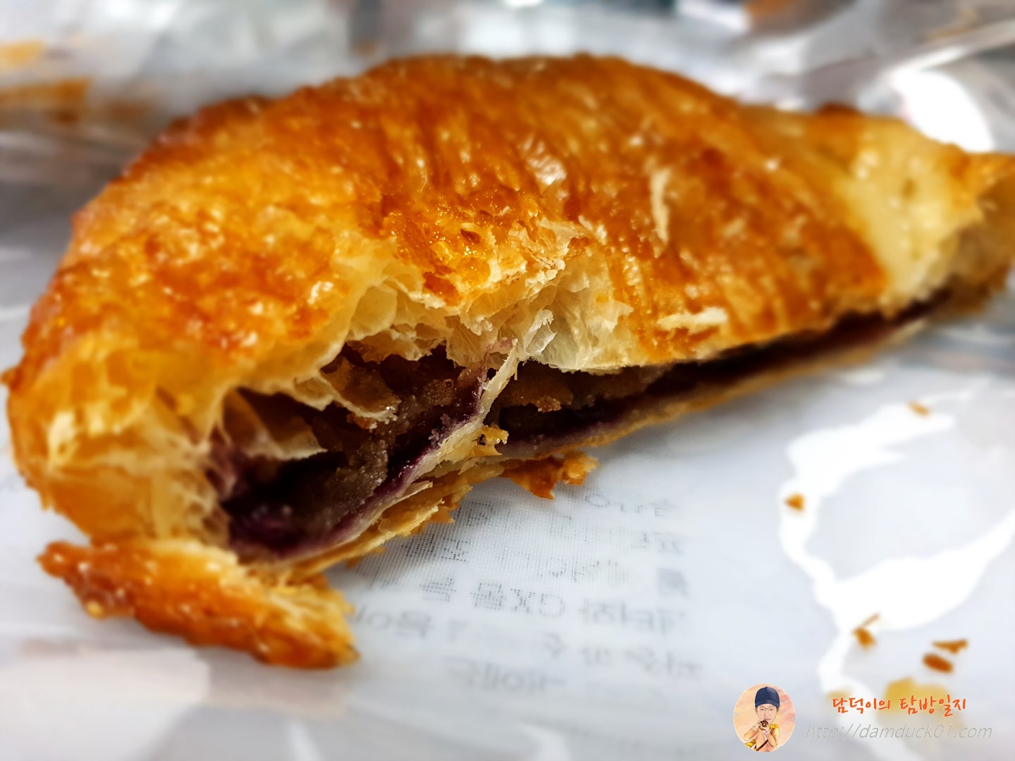 다음은 제가 고른 블루베리 아몬드 파이인데 이것도 맛있었어요. 겉은 제가 좋아하는 부드러운 식감이 아니었지만 안에 들어 있는 속이 달달하니 맛나더라고요. 살찌는 맛. 이게 맛있는 거거든요.