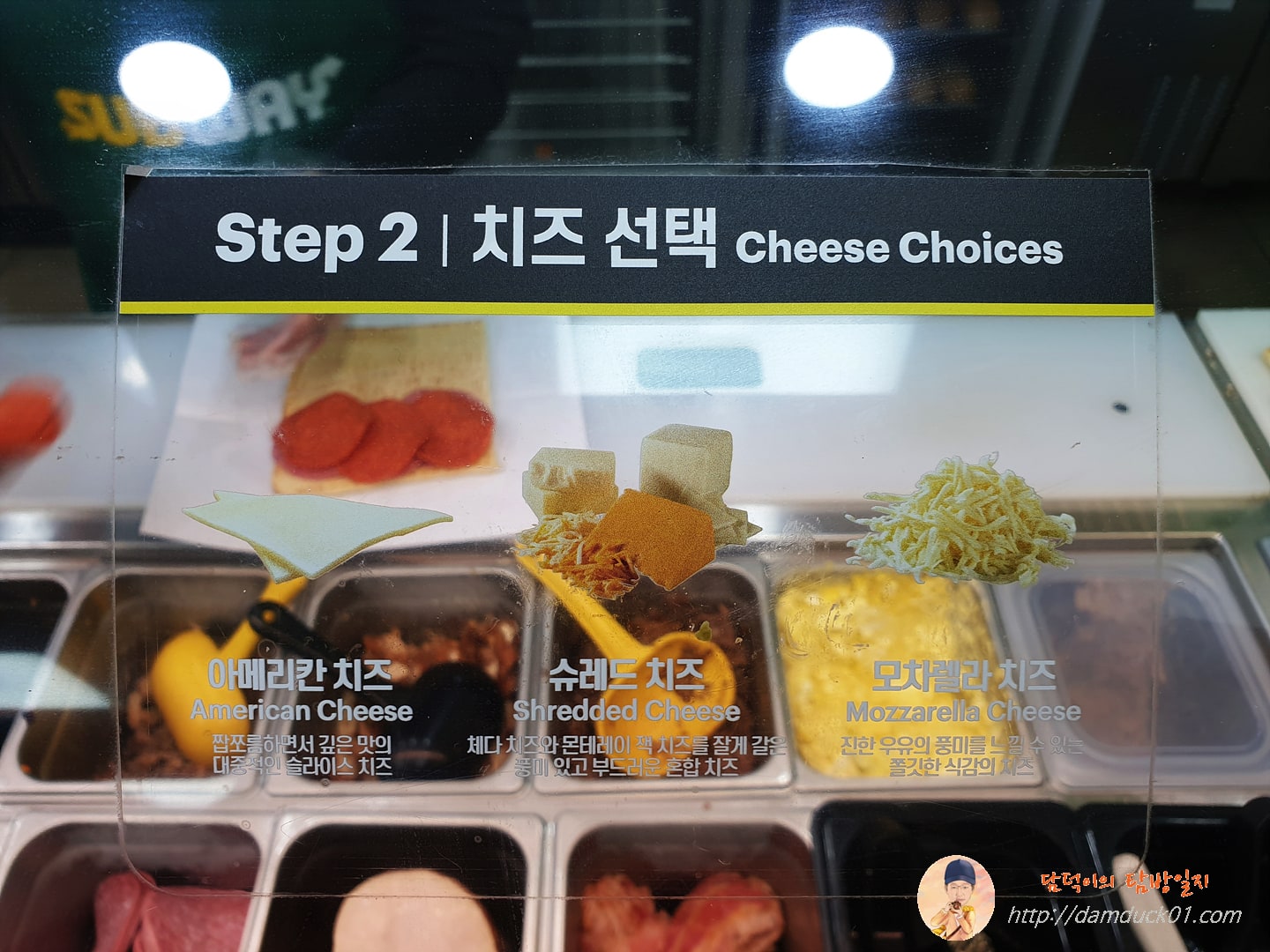 2단계 치즈 선택에서는 슈레드 치즈를 선택했는데요. 슈레드 치즈는 체다 치즈와 몬테레이 잭 치즈를 잘게 간 풍미 있고 부드러운 혼합 치즈라는데 그냥 안 먹어본 걸로 주문한 거예요. 체다 치즈는 들어만 봤지 몬테레이 잭 치즈가 뭔지 제가 어찌 알겠습니까? 어쩌다 보니 직장인 점심 메뉴 탐방으로 맛집 포스팅을 많이 하고 있지만 제가 먹을 줄이나 알지 요알못인 남자랍니다.