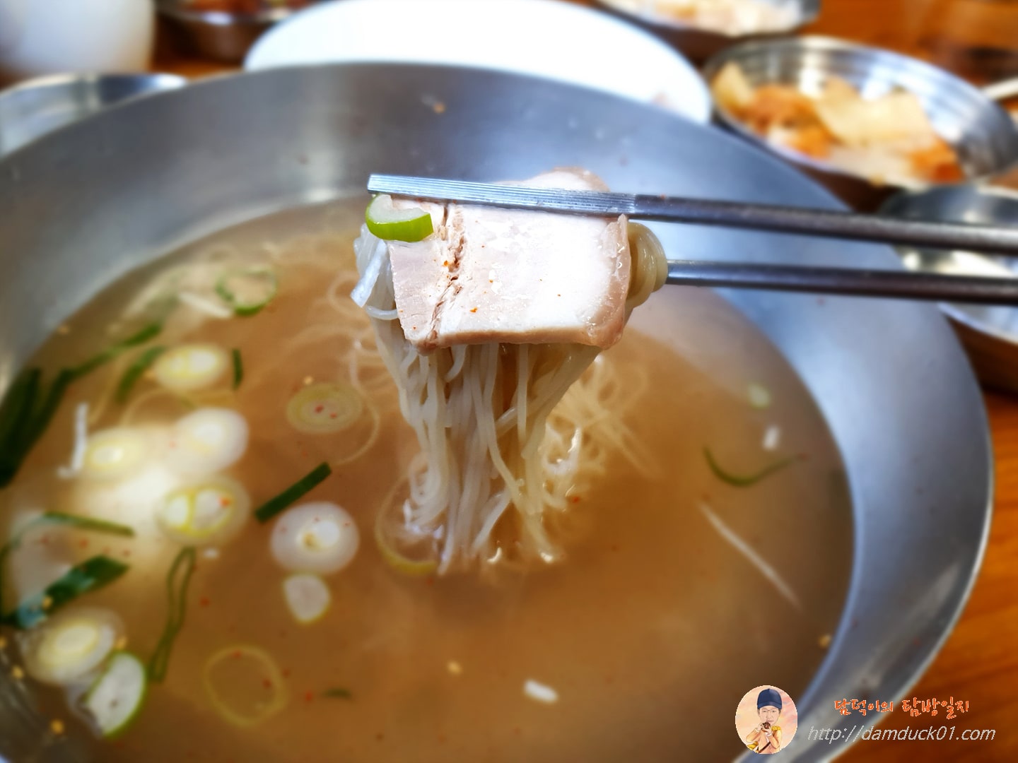 이번 포스트의 주인공. 필동면옥의 평양냉면을 드디어 접했습니다. 제가 냉면을 굉장히 좋아하는 편이긴 한데요. 제가 좋아하는 냉면은 함흥냉면이거든요. 꽤 오래전에 평양냉면이 맛있다는 말에 평양냉면만 먹으러 다녀 본 적이 있었는데 아무리 먹어도 평양냉면은 제 취향은 아니라는 결론을 내렸습니다. 그래서 잘 안 먹는 평양냉면인데 필동면옥의 평양냉면은 일단 비주얼이 남다르네요. 맑은 국물에 파가 둥둥 떠다니고 고춧가루가 뿌려져 있어요.