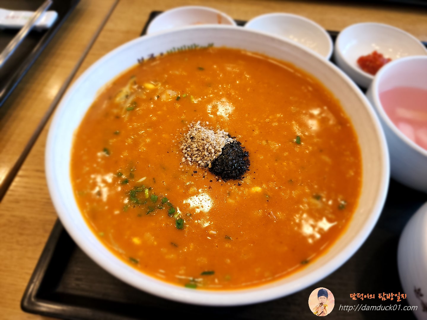 메뉴에는 맵다는 표시로 고추가 3개나 표시되어 있는 신짬뽕죽이지만 일단 보기에는 많이 매워 보이지 않아요.