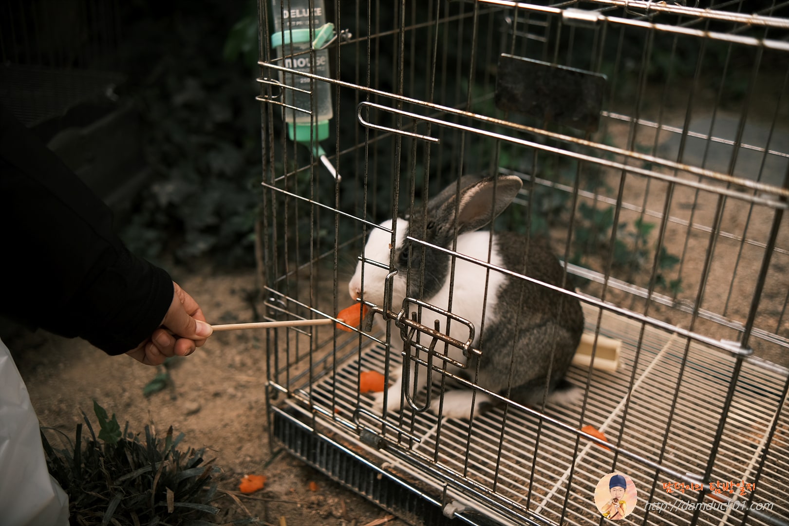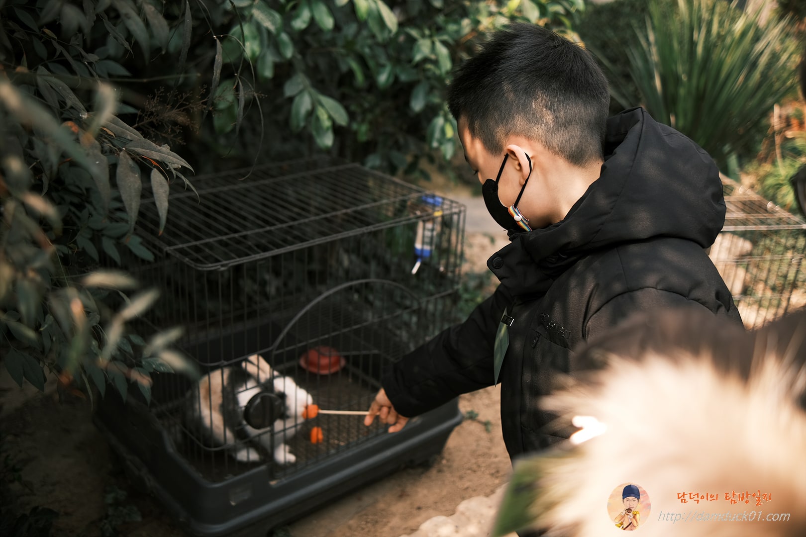 토끼한테도 먹이로 당근을 주는데 이때는 꼭 나무에 꽂아서 주라고 안내되어 있으니까 아이들이 절대 손으로 주지 못하게 해 주셔야 합니다.