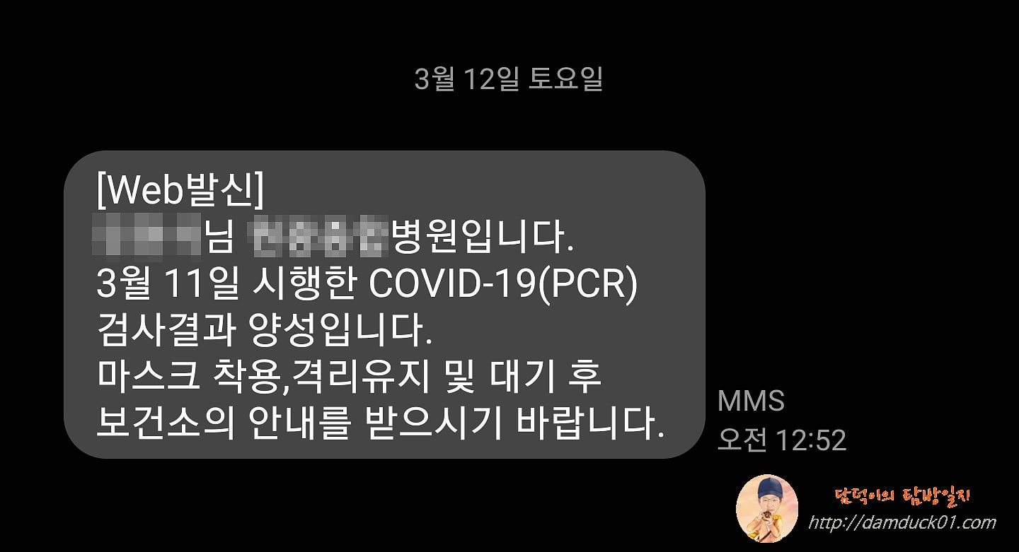 뭐 양성이 나올 수도 있겠다고 생각은 했지만 막상 양성이라는 문자를 받으니까 기분이 좋지는 않네요.