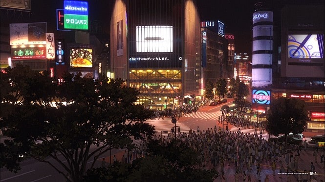 그러고 보면 이 애니메이션에서는 내용과 함께 보이는 것에서도 같은 장면을 여러 시선으로 보여주는 경우가 많은데요. 둘째 아들인 가람이가 이 애니메이션을 보면서 가장 많이 한 말이 "저 CCTV는 왜 보여주는 거야?"라는 말이었거든요. 인간 세상의 배경인 시부야를 보여줄 때 CCTV가 촬영하는 장면을 보여주는 경우가 많은데 감독의 말에 의하면 아래와 같은 의도였다고 합니다.