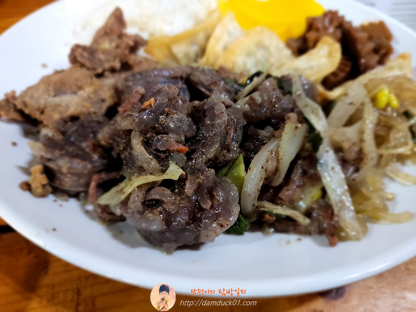 4월 19일 화요일에 왔을 때 나왔던 로제 떡볶이 대신 그냥 떡볶이로 바뀌었고 감자채 볶음 대신 잡채가 나왔고 쌈무가 없어진 건 많이 아쉽습니다. 순대볶음을 쌈무랑 같이 먹는 조합이 전 좋았거든요.