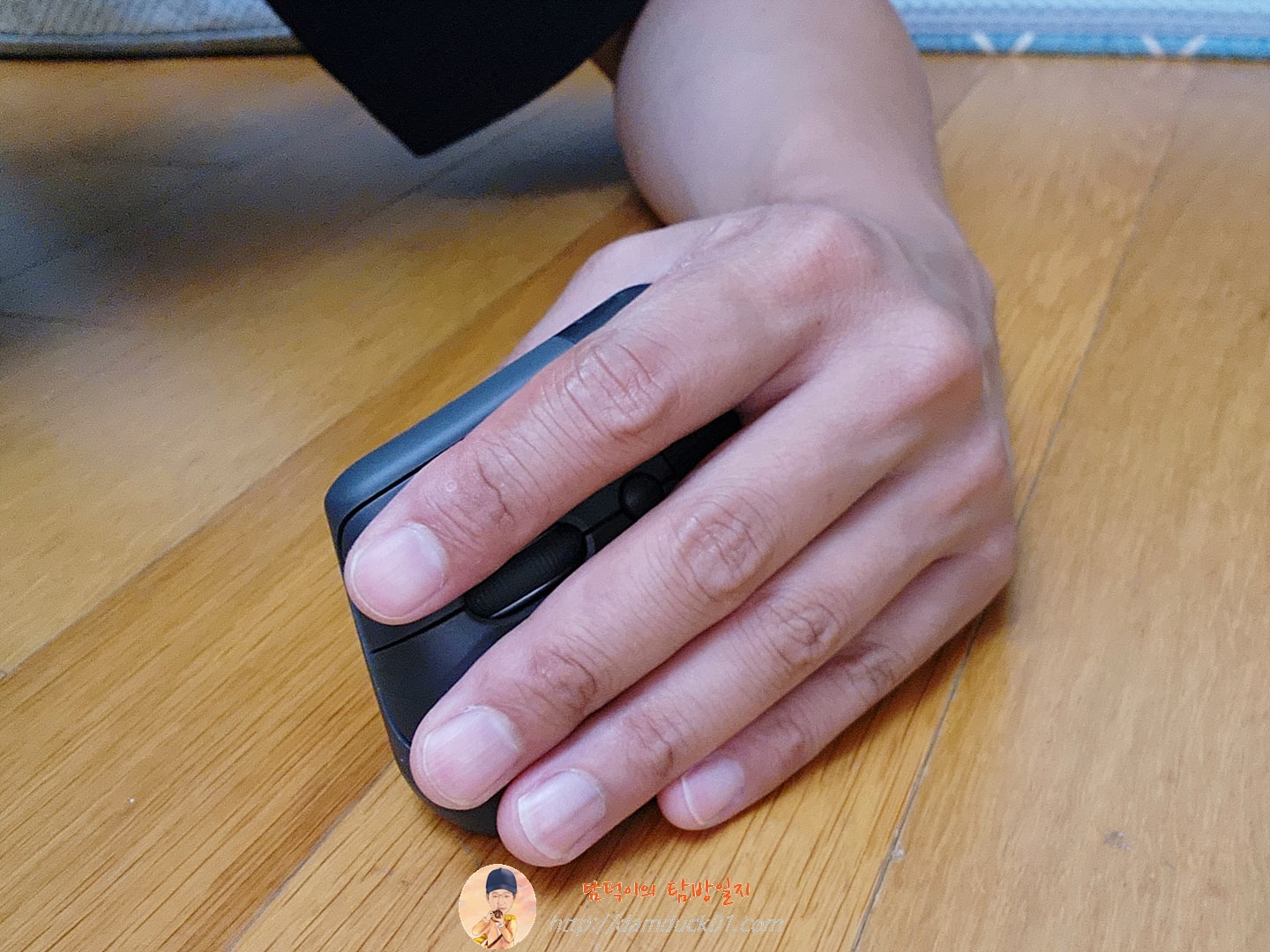 그런데 19cm 정도인 제 손으로 로지텍 리프트 마우스를 잡아보니 딱 맞네요. 다른 리뷰를 보면 새끼손가락이 남는다고 하는데 저에게는 바닥까지 해서 나쁘지 않은 그립감을 제공합니다. 어떻게 이 정도면 감이 오시나요?