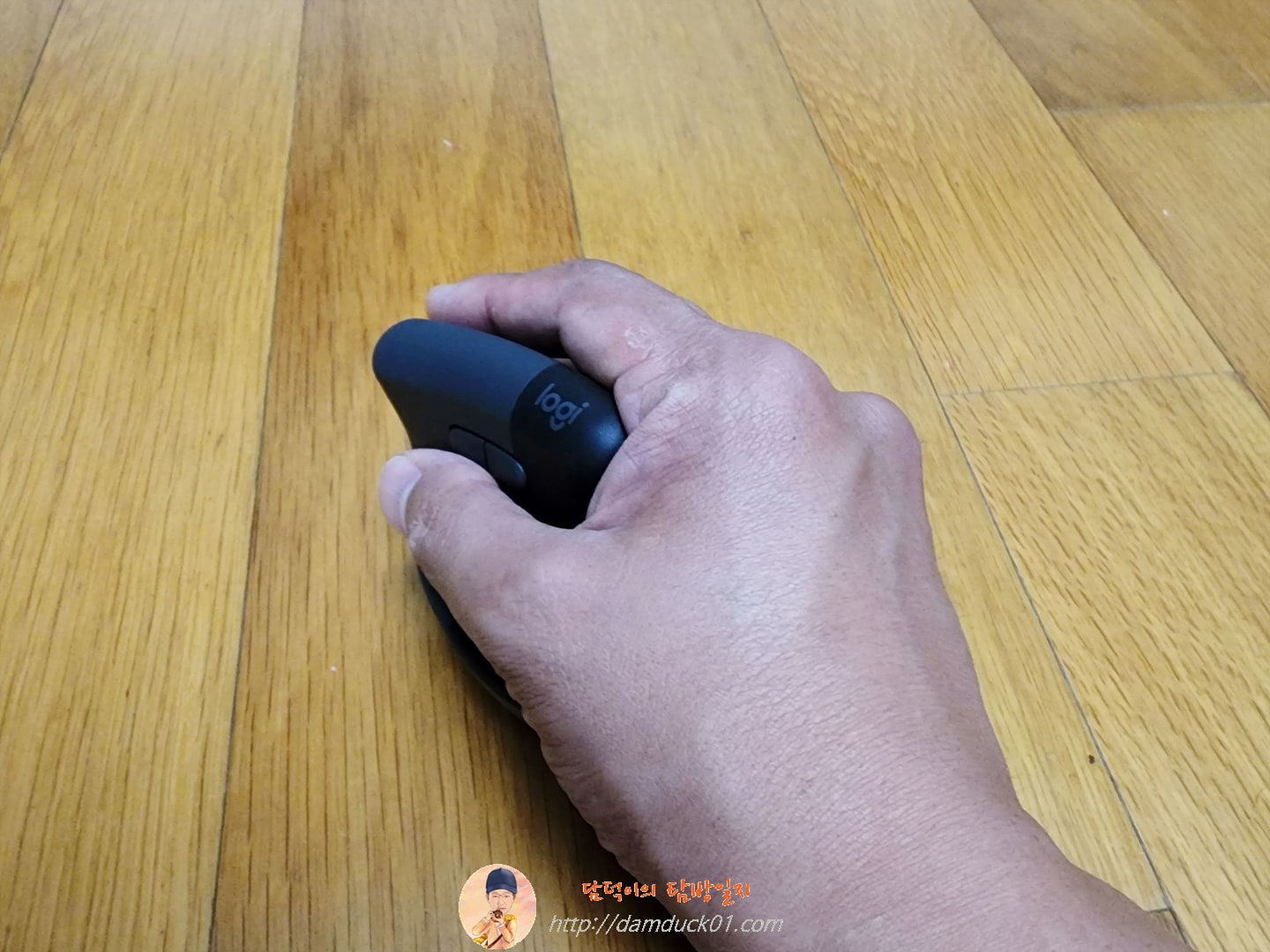 그런데 19cm 정도인 제 손으로 로지텍 리프트 마우스를 잡아보니 딱 맞네요. 다른 리뷰를 보면 새끼손가락이 남는다고 하는데 저에게는 바닥까지 해서 나쁘지 않은 그립감을 제공합니다. 어떻게 이 정도면 감이 오시나요?